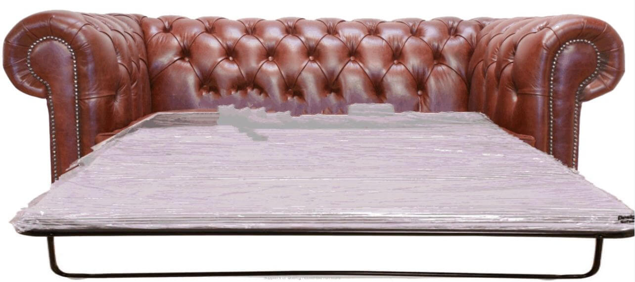 Restrictions in the nature of the design of our Chesterfield sofa means that only a 3.5” – 4” foam mattress can be fitted onto a 3 fold action, with a fully webbed base, without wooded slats.