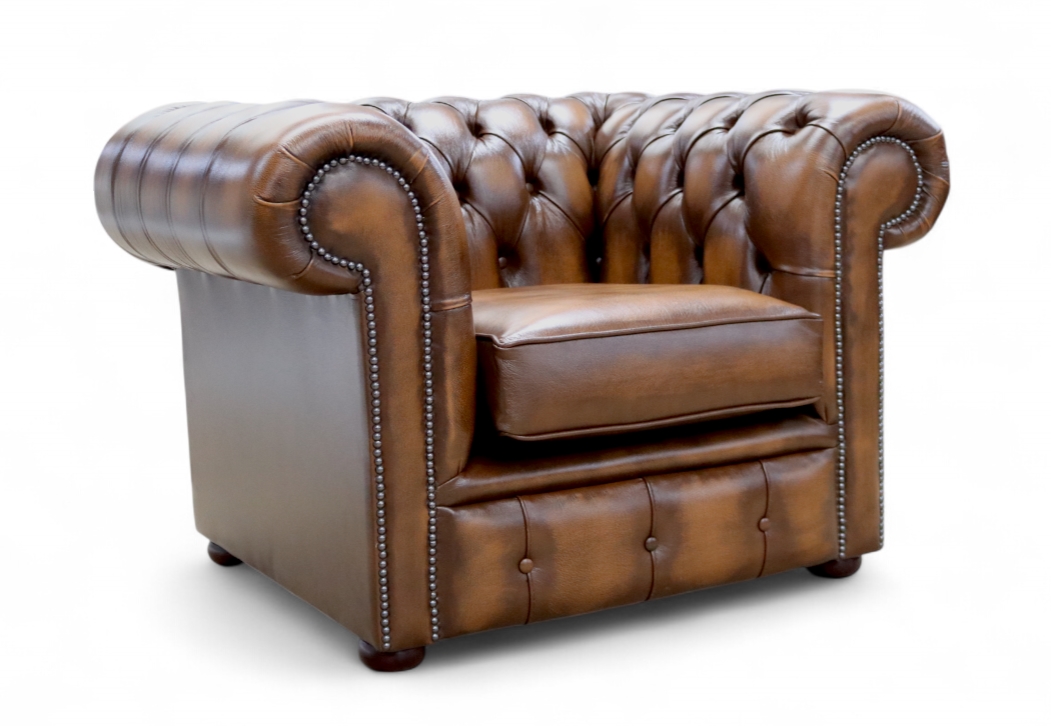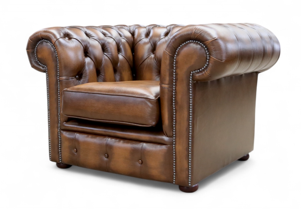 Bring timeless elegance and unmatched comfort into your home with this luxurious Chesterfield Leather Armchair. Featuring the iconic rolled arms, deep button tufting, and nailhead trim, this piece is a classic blend of traditional charm and sturdy craftsmanship.