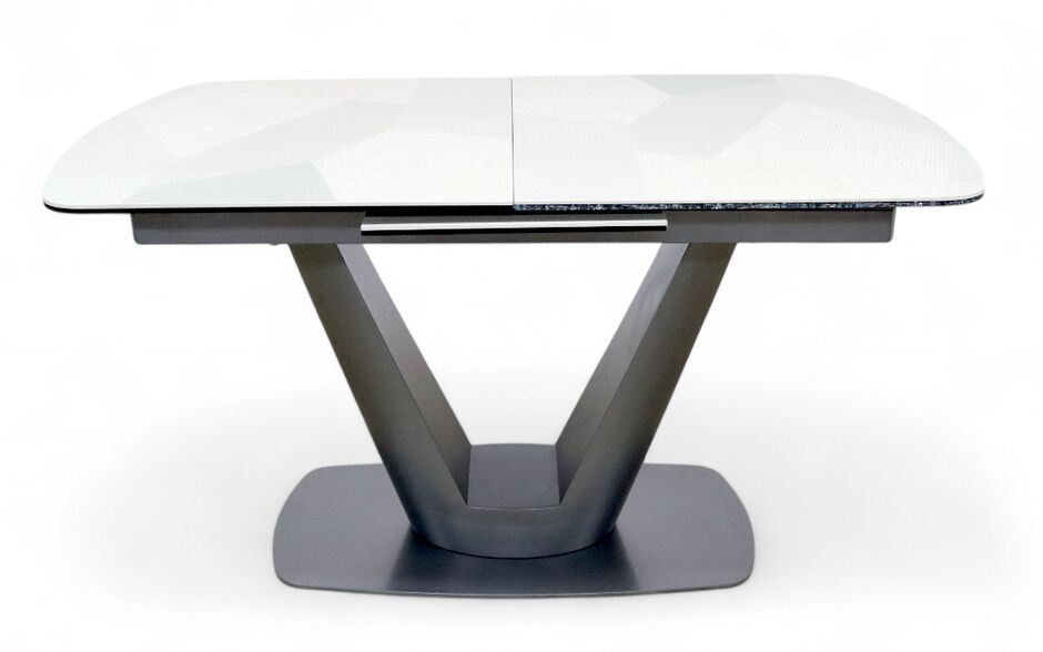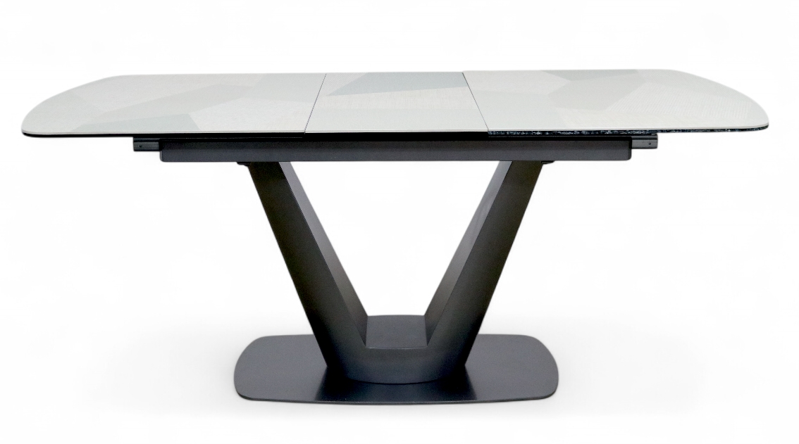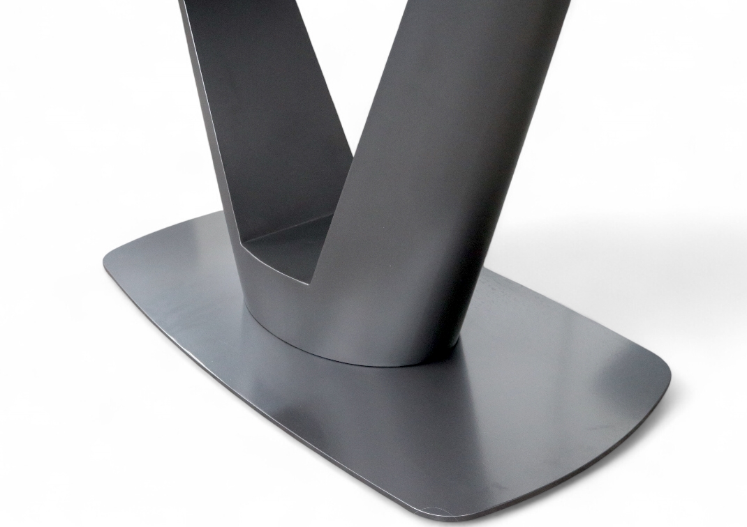 • Sculptural Base Design: A bold V-shaped pedestal base in matte black metal provides stability while adding a modern edge.