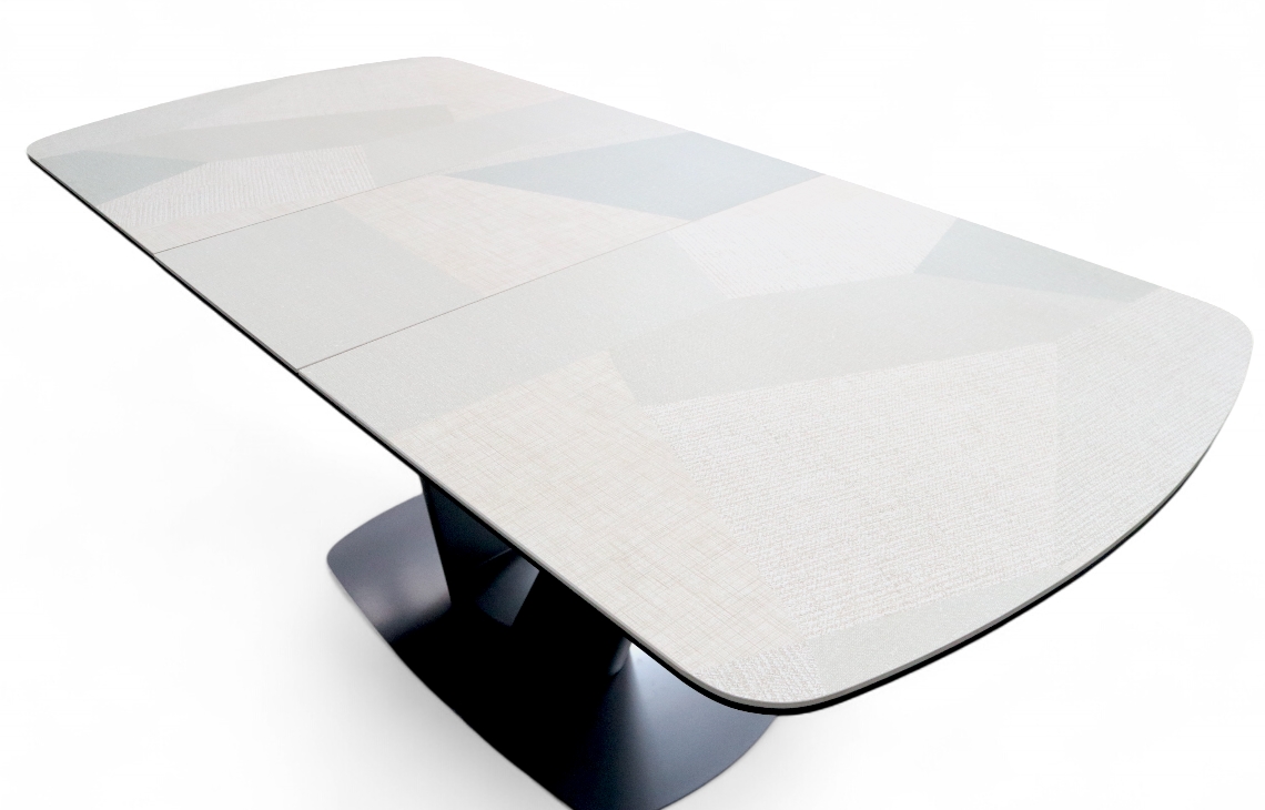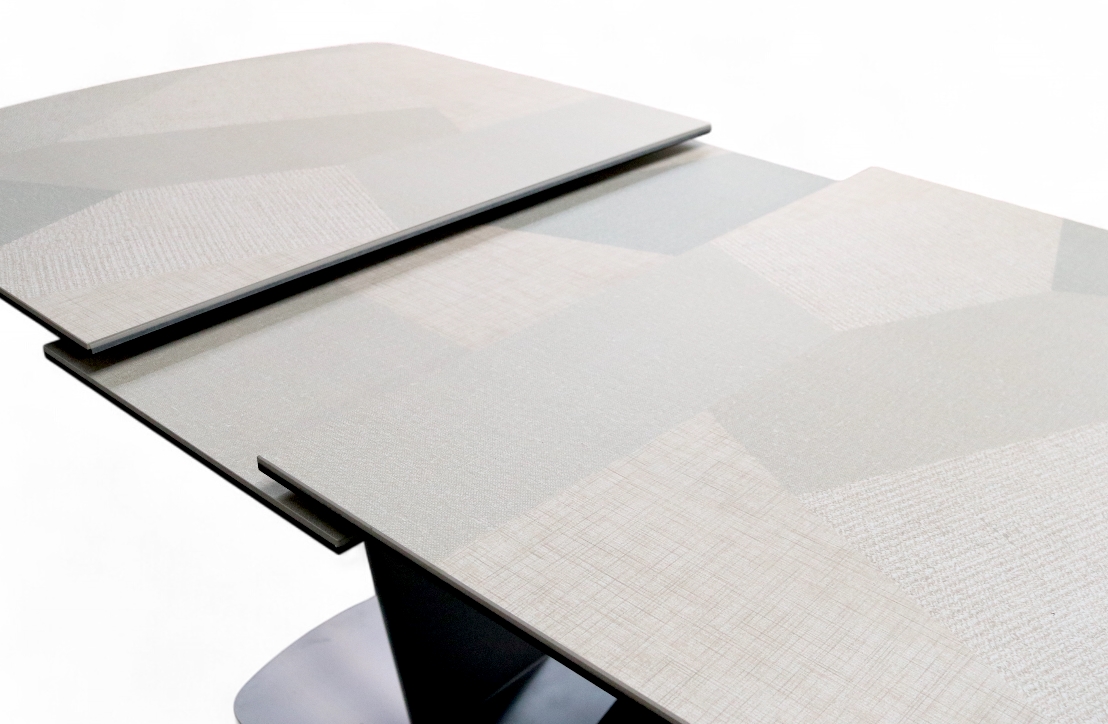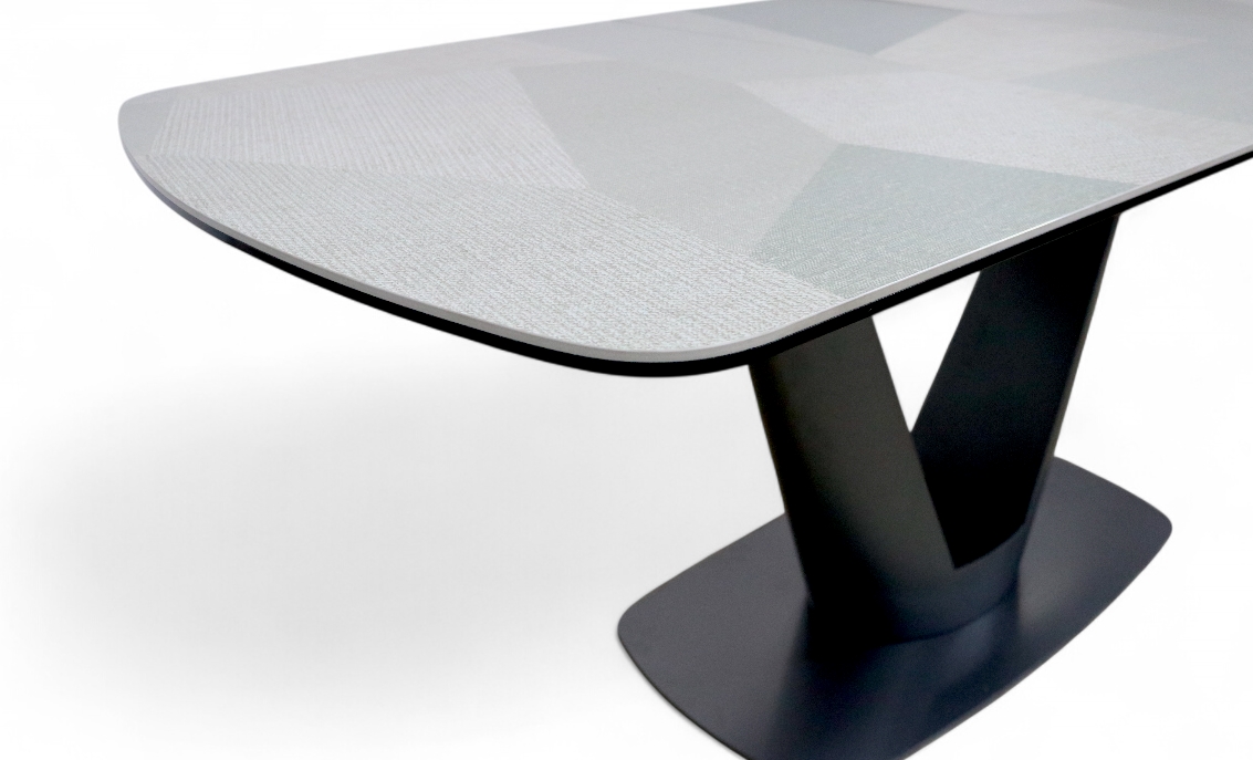 • Sleek Ceramic Top: The tabletop boasts a sophisticated geometric ceramic finish, offering both durability and a luxurious texture.