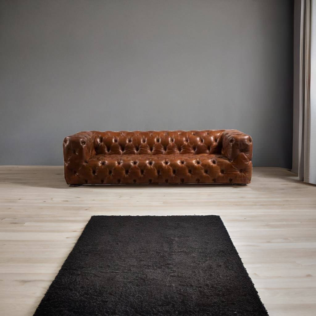 Edmund Chesterfield Distressed Vintage Buttoned 3 Seater Leather Settee Sofa