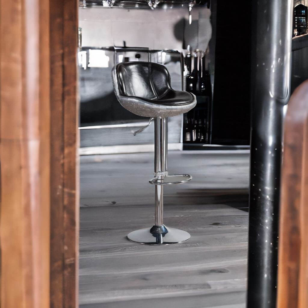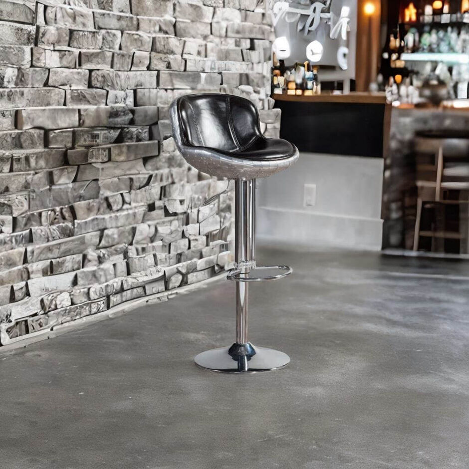 Bring a bold industrial edge to your space with this Aviator Leather Breakfast Bar Stool. Featuring a sleek, high-gloss chrome base and a seat inspired by vintage aircraft design, this stool combines luxury and functionality. The seat is upholstered in distressed leather, contoured for comfort with a wrap-around backrest. The riveted aluminum-style sides add a unique touch of aviator flair.