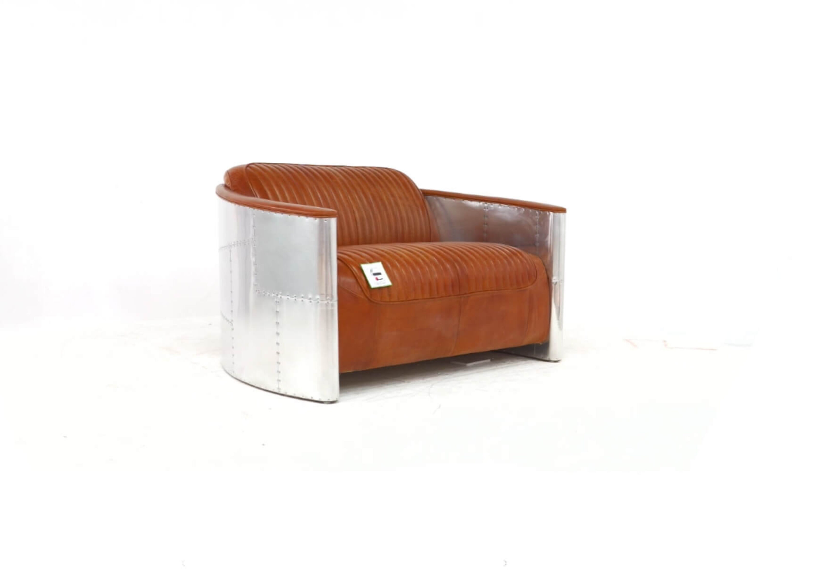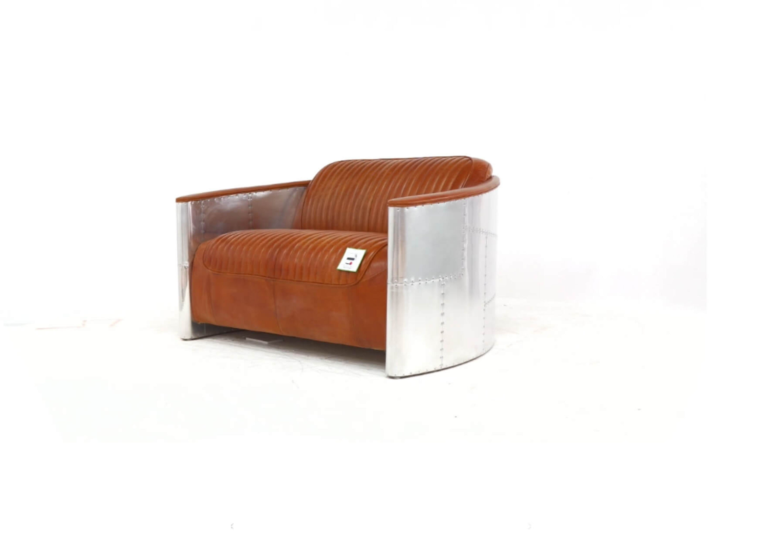 Bring bold industrial charm and vintage aviation style into your space with this striking Aviator Pilot 2-Seater Sofa. Upholstered in premium vintage tan distressed leather, this statement piece features a ribbed, bomber-jacket-style design for both the seat and backrest, delivering unmatched comfort and classic flair.