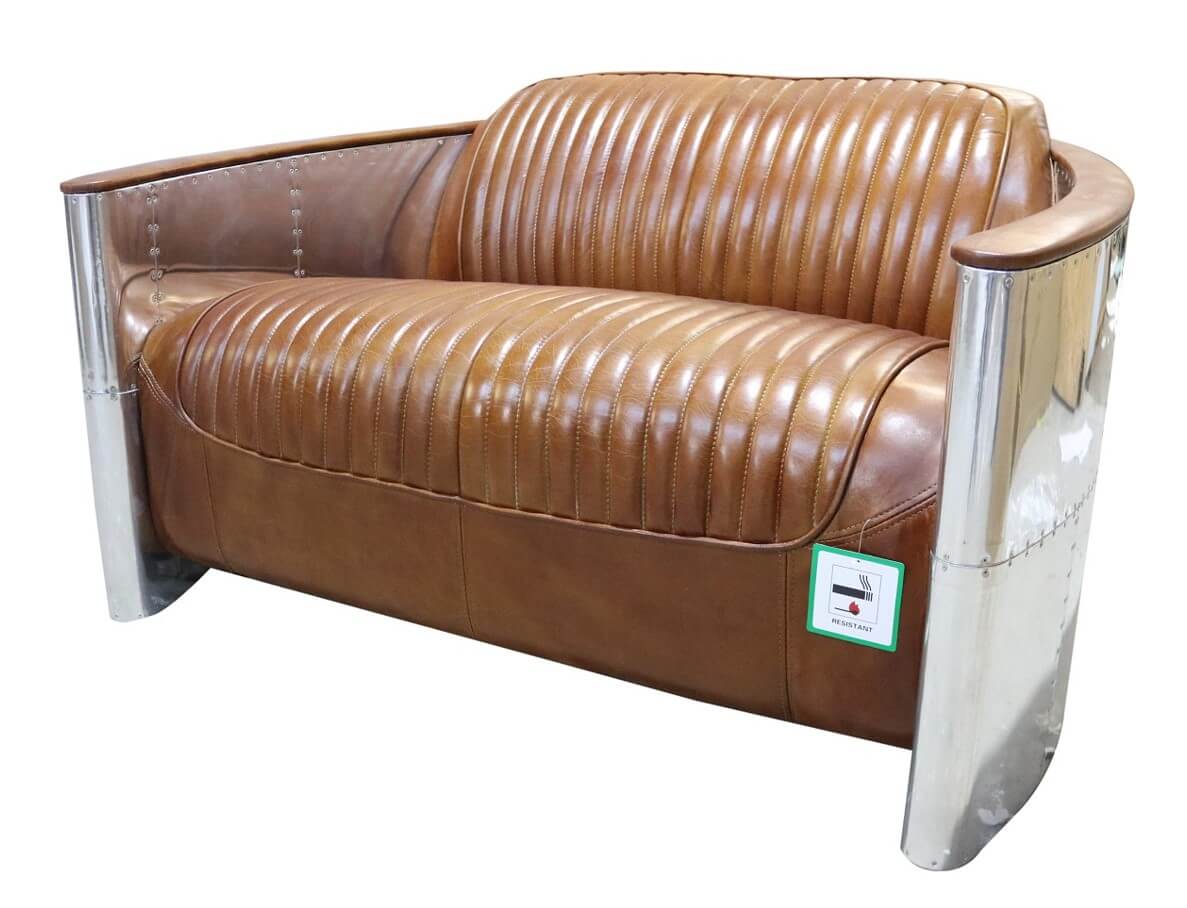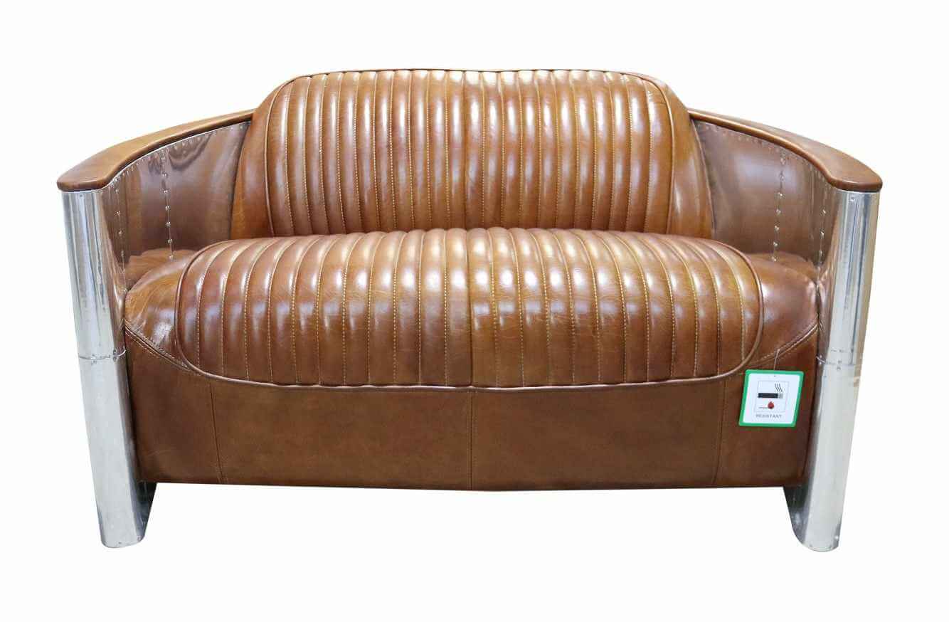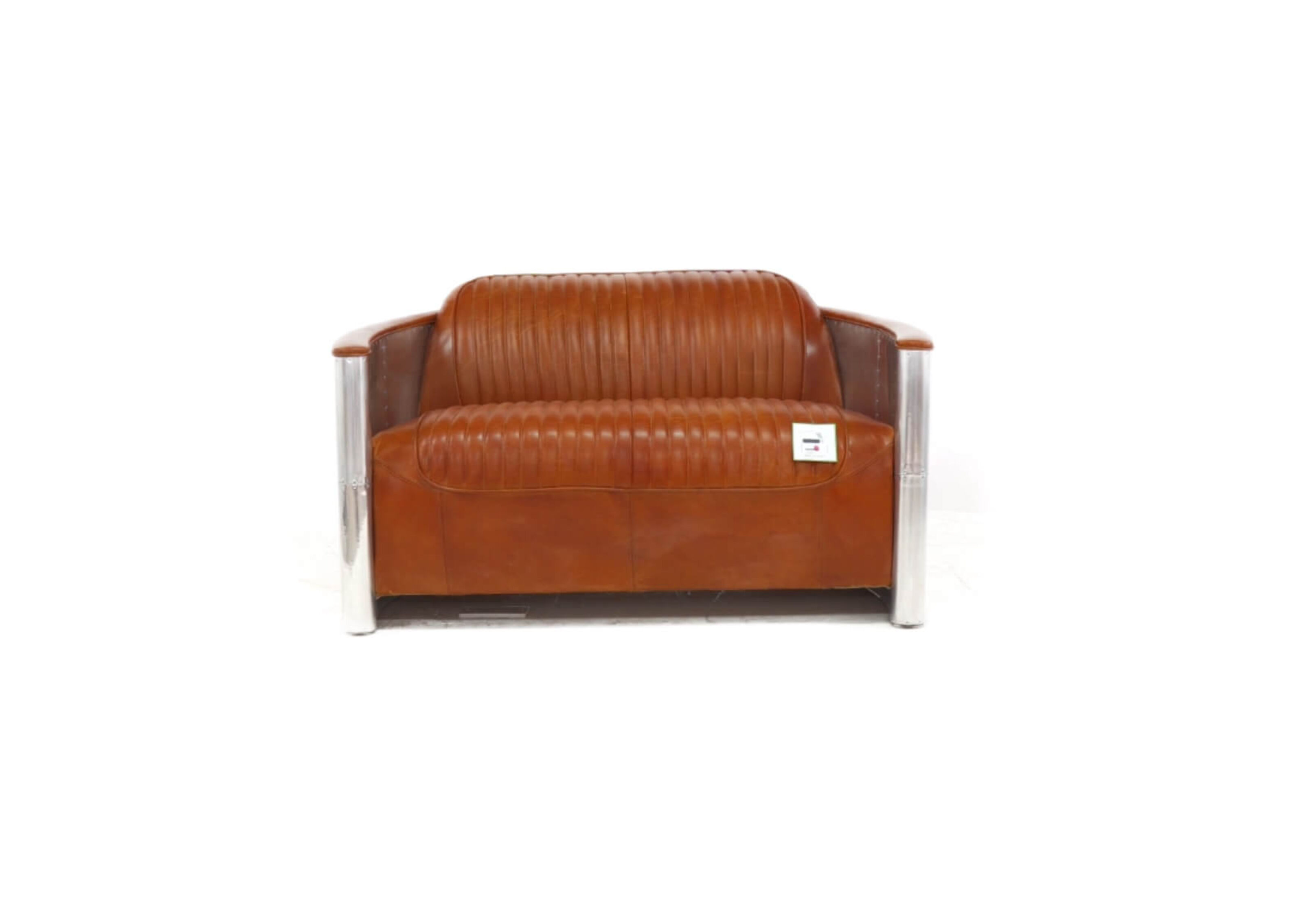 Aviator Pilot 2-Seater Sofa – Vintage Tan Distressed Leather