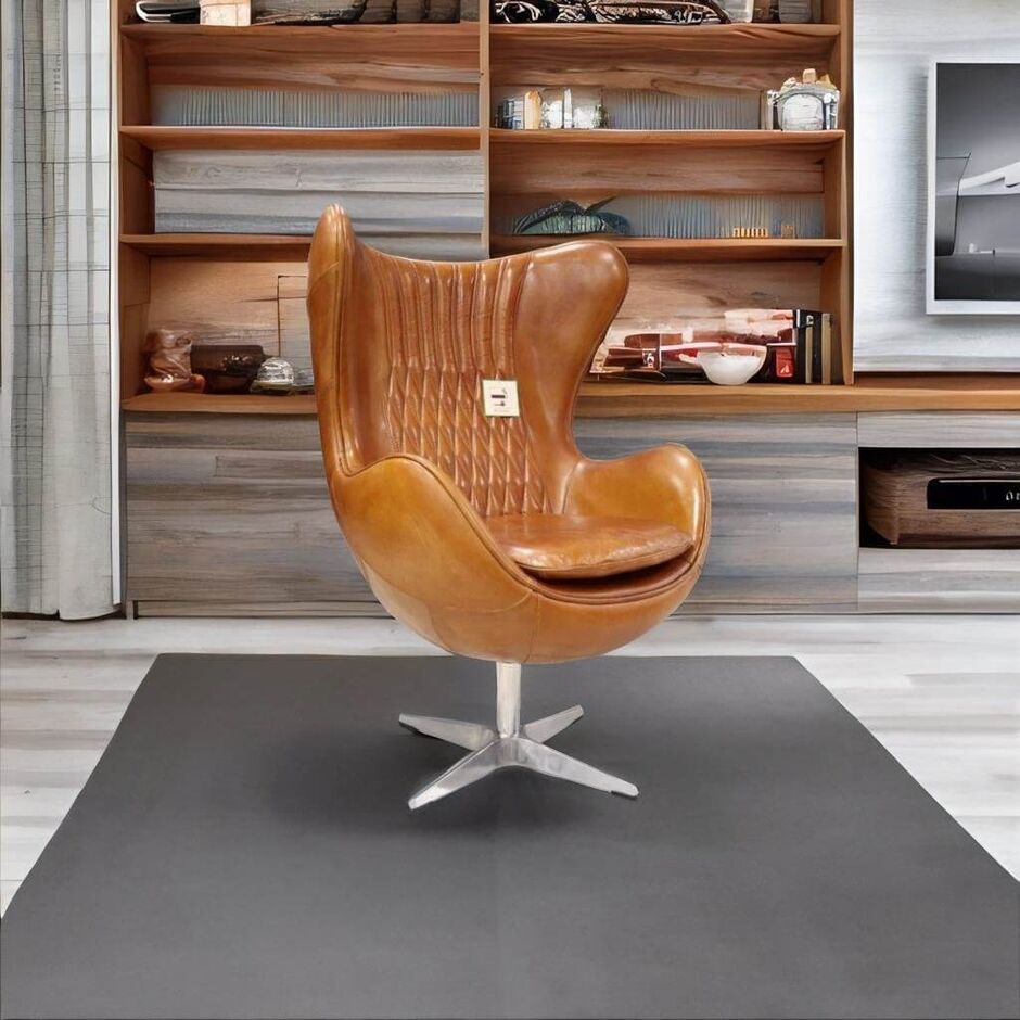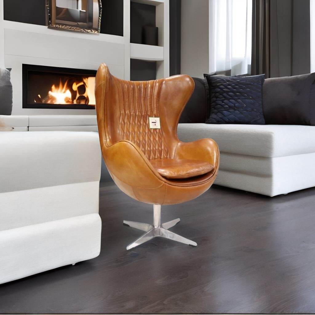 Aviator Retro Swivel Egg Armchair – Vintage Distressed Leather