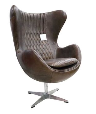 Aviator Retro Swivel Egg Armchair – Vintage Tobacco Brown Distressed Leather