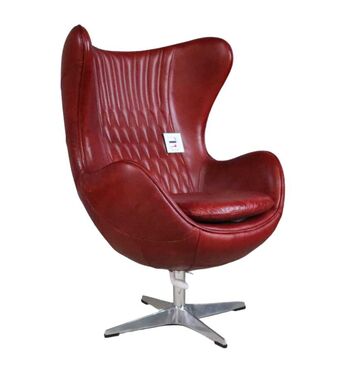 Upgrade your interior with this statement piece inspired by mid-century modern design. The Aviator Retro Swivel Egg Armchair features a sleek and bold silhouette in distressed rouge red leather, evoking vintage charm and contemporary sophistication. Designed for both comfort and style, this armchair includes: