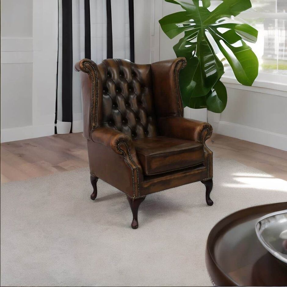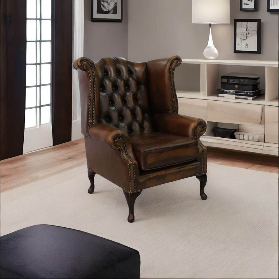 Chesterfield Queen Anne High Back Wing Chair Old English Bruciato