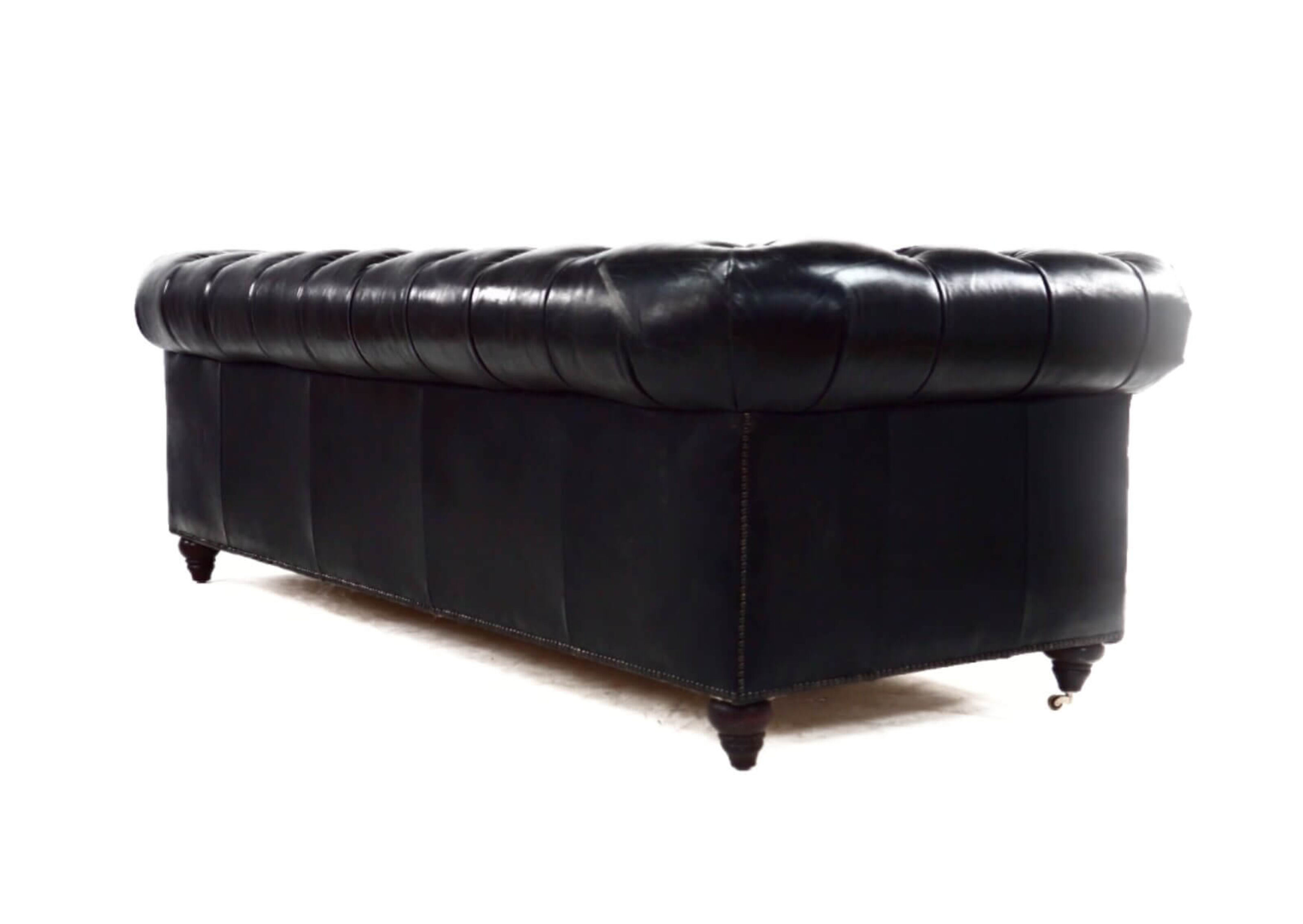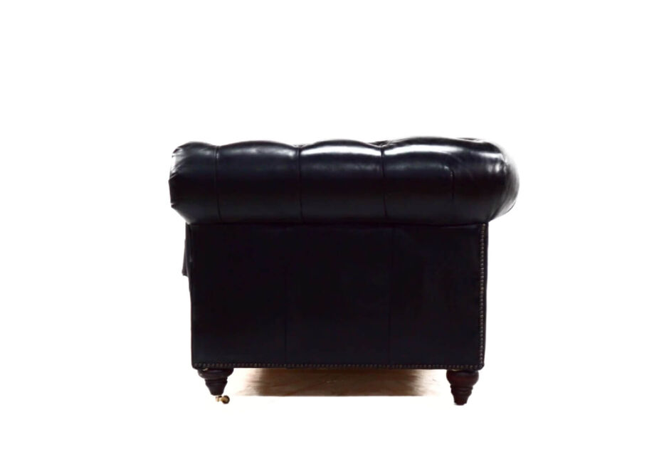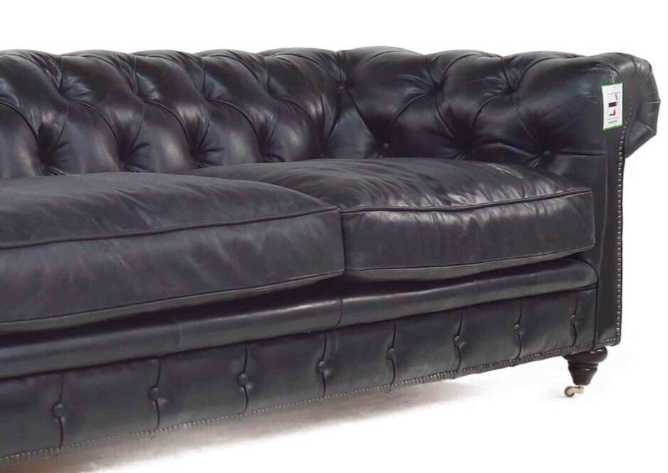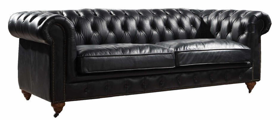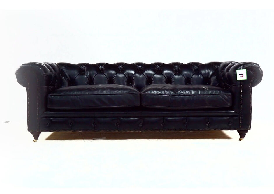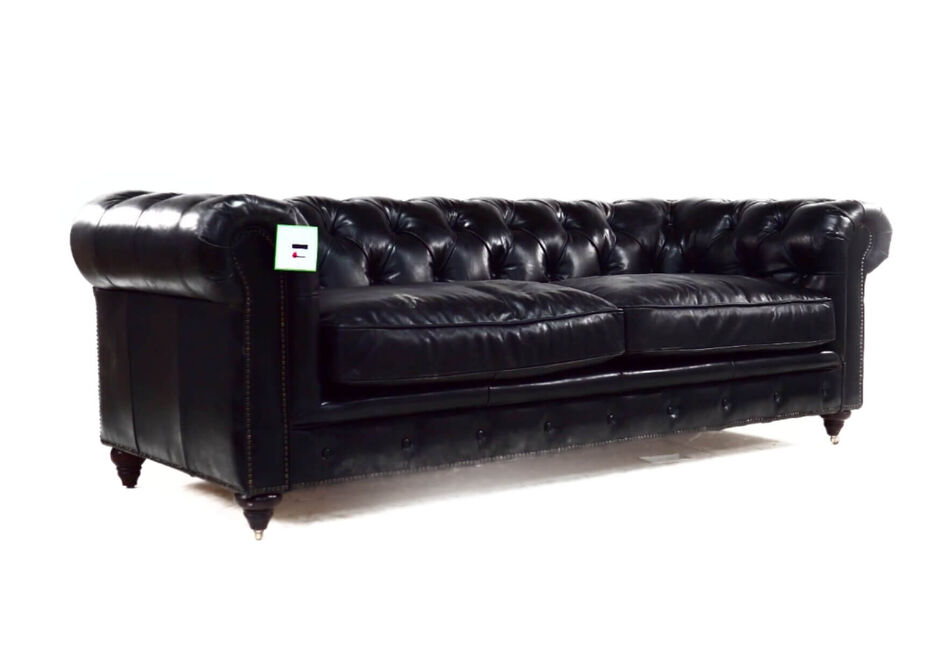 From the UK's vintage furniutre stocklist this 3 seater leather sofa combines a beautiful buttoned back and armrests, with a vintage studding in the front is  available in a wide range of vintage distressed colours (Brown, Black, Tobacco, Rouge, Tan)