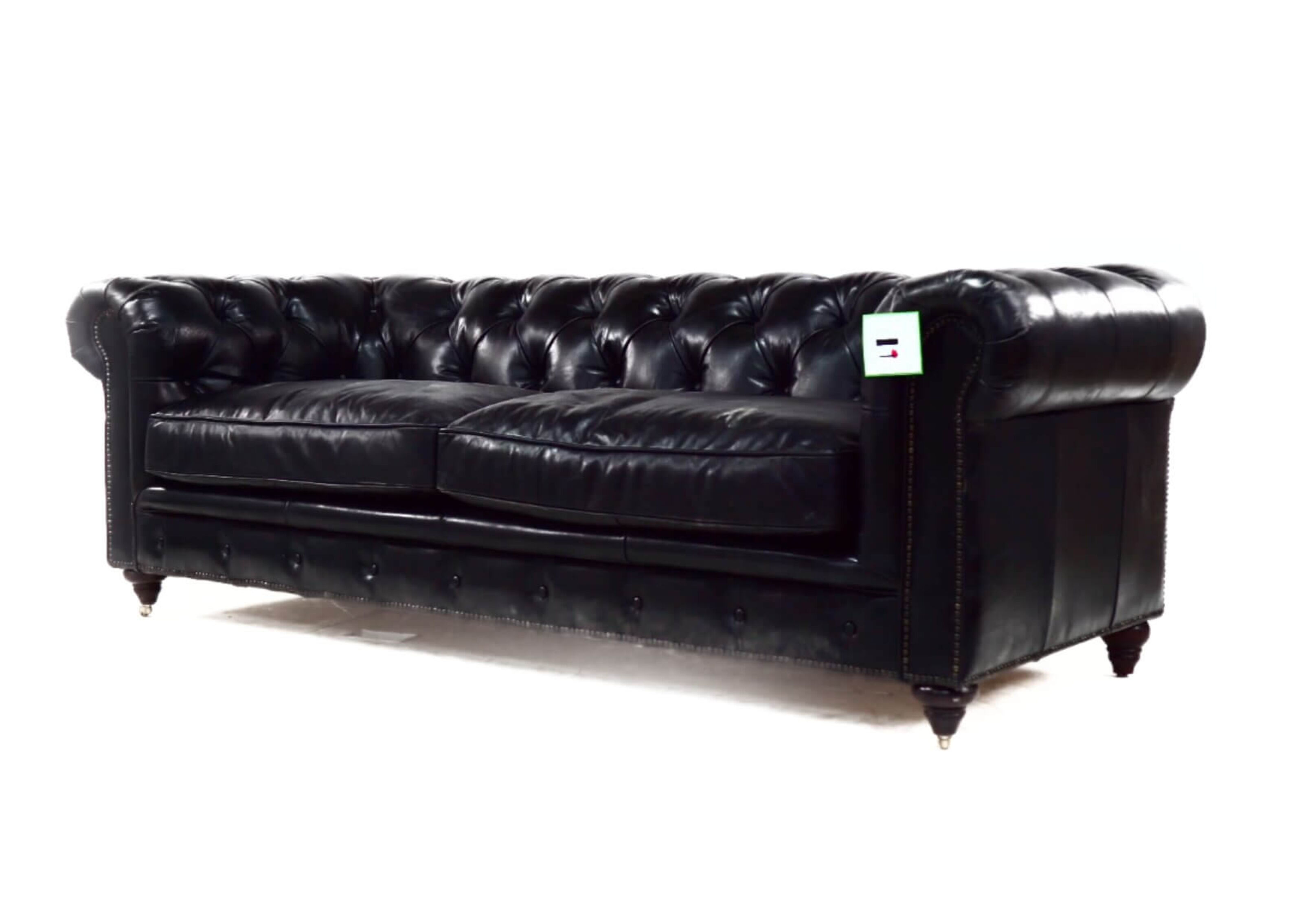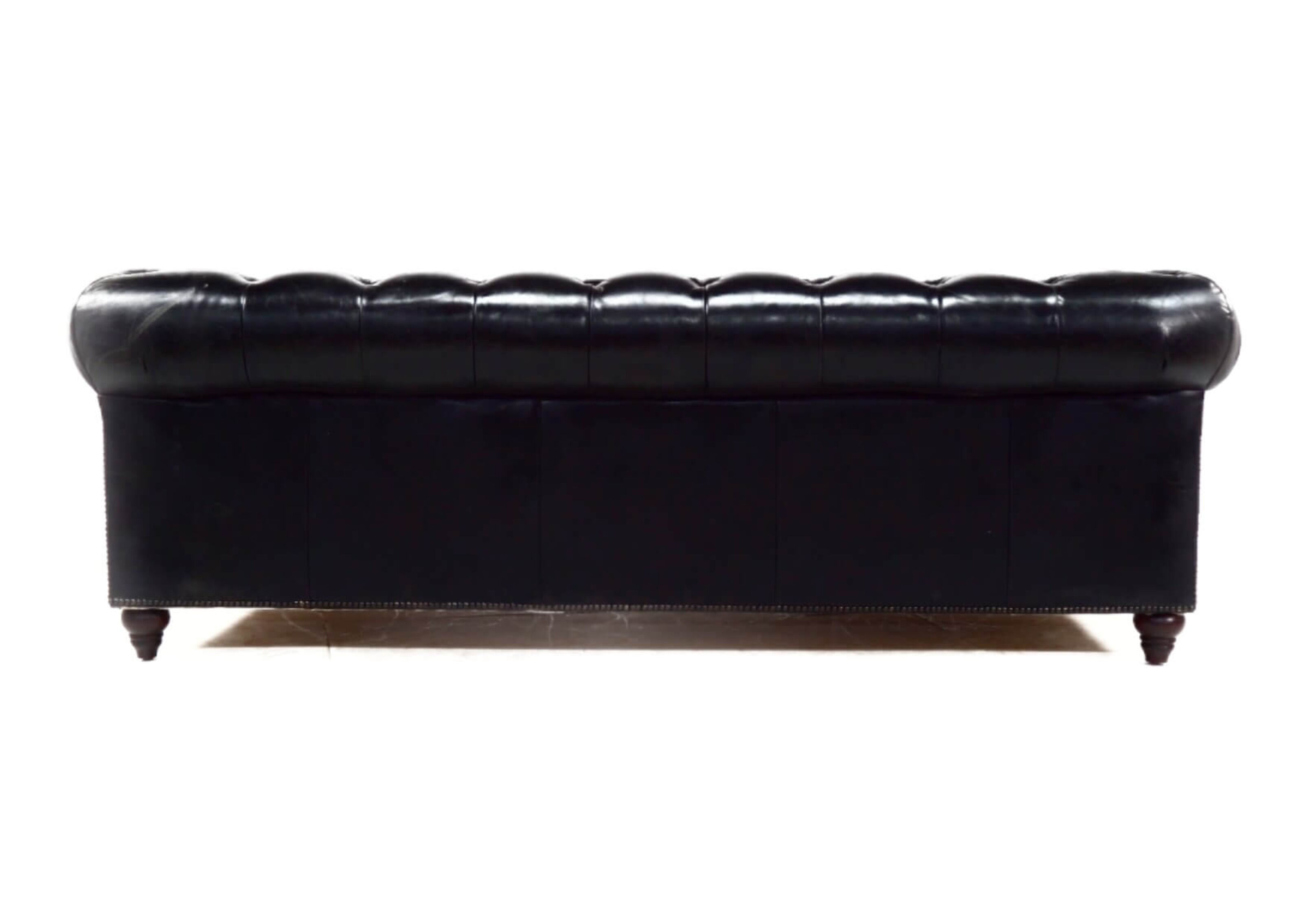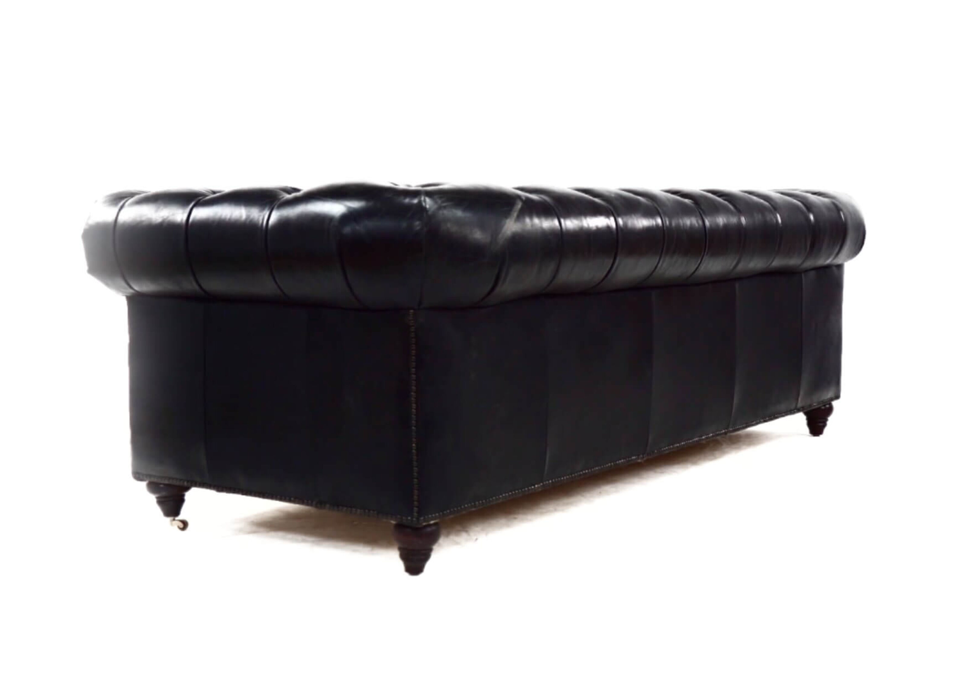 From the UK's vintage furniutre stocklist this 3 seater leather sofa combines a beautiful buttoned back and armrests, with a vintage studding in the front is  available in a wide range of vintage distressed colours (Brown, Black, Tobacco, Rouge, Tan)