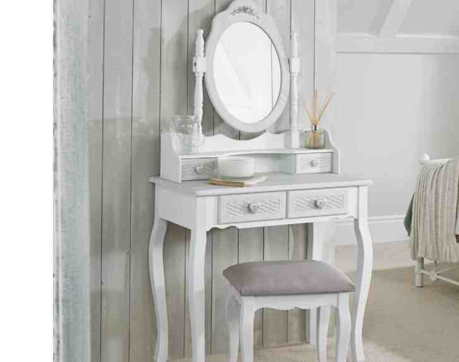 Baldassario White High Gloss Dressing Table With Mirror