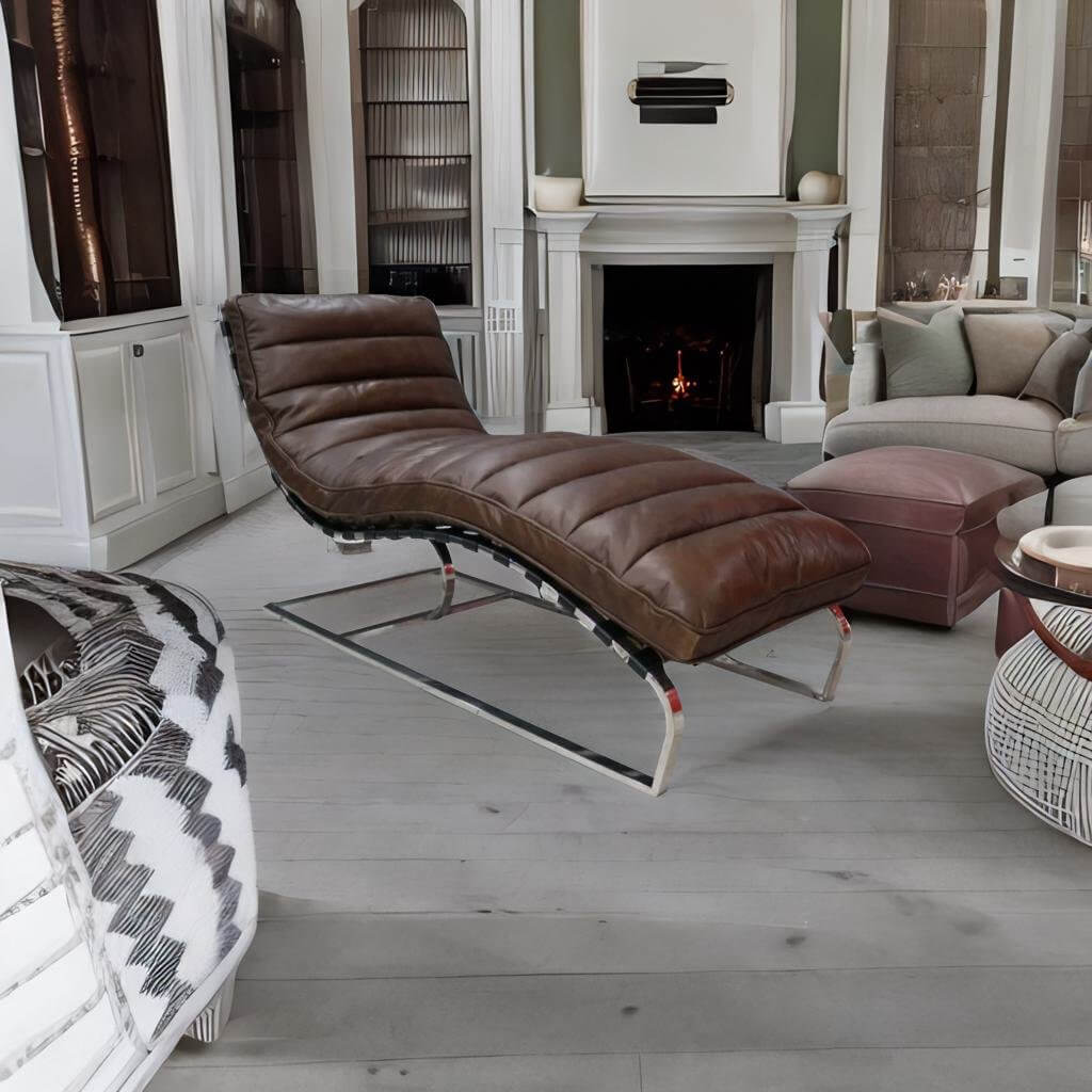 Vintage Chocolate Leather Chaise Lounge – Bilbao Daybed Style