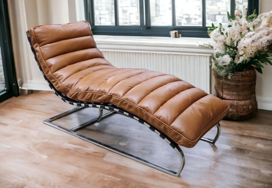 Vintage Orange Brown Leather Chaise Lounge – Bilbao Daybed Style
