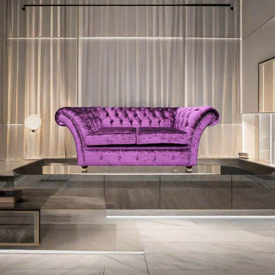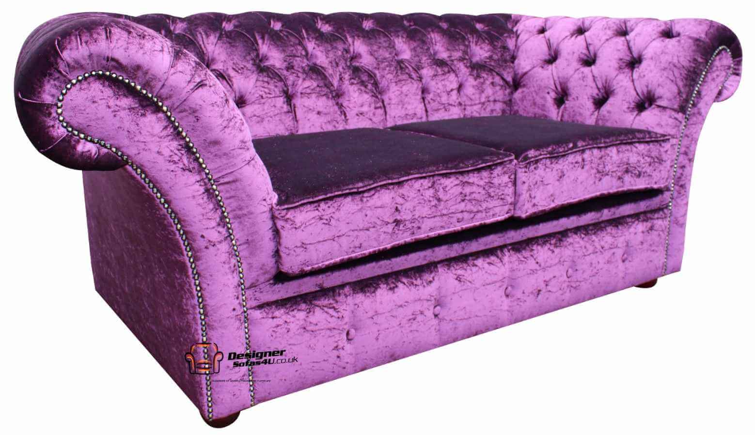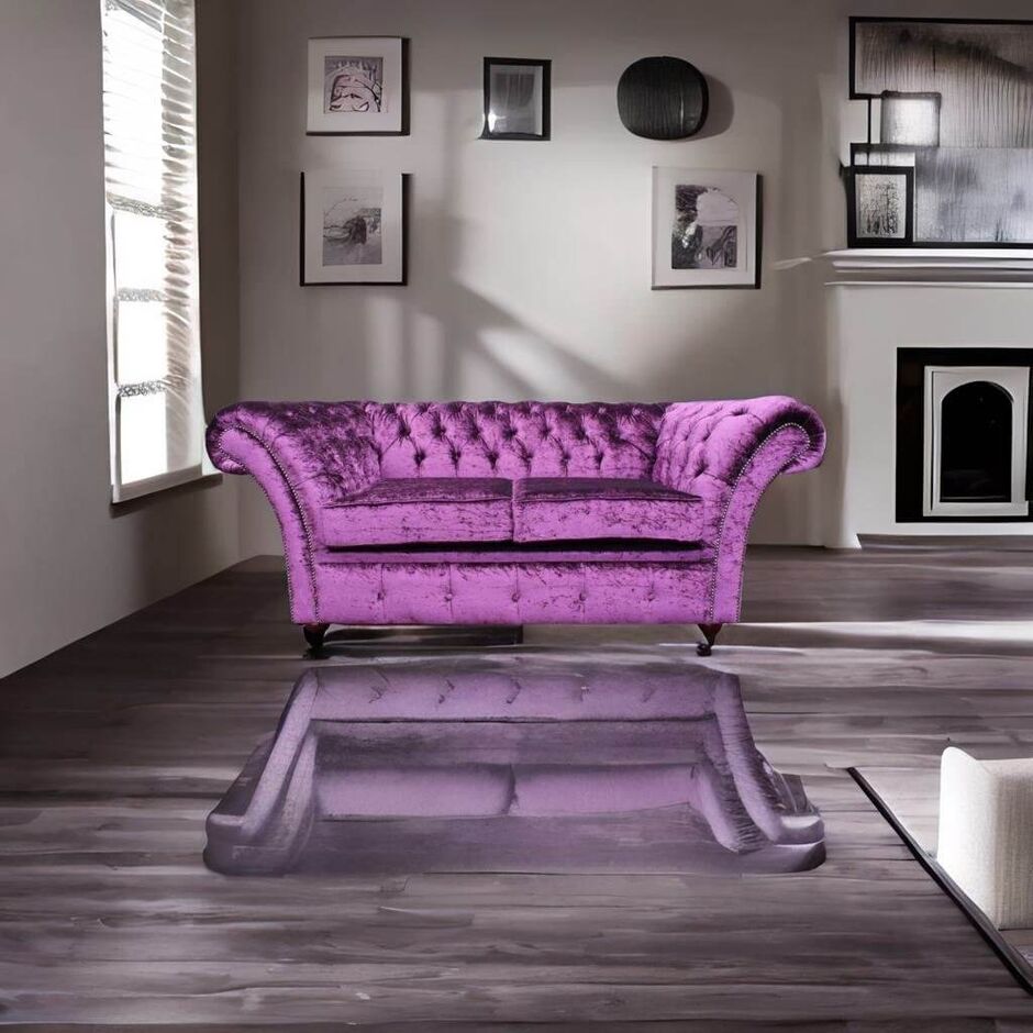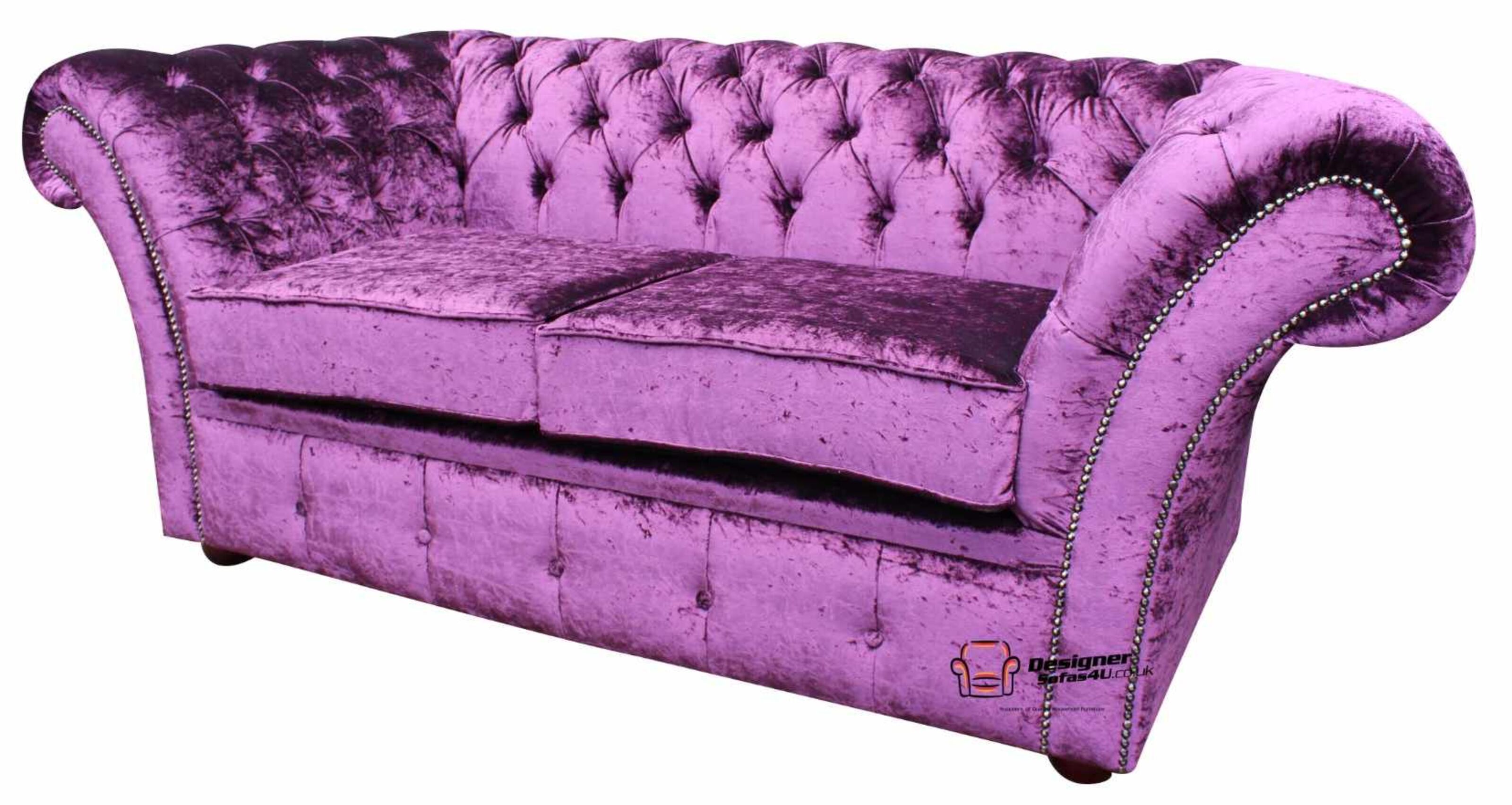 Chesterfield Balmoral Purple 3 Seater Sofa Settee Boutique Crush Velvet Fabric