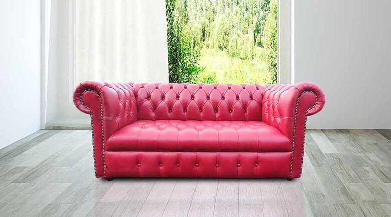 Chesterfield Balmoral 2 Seater Sofa Settee Modena Pillarbox Red Velvet Fabric