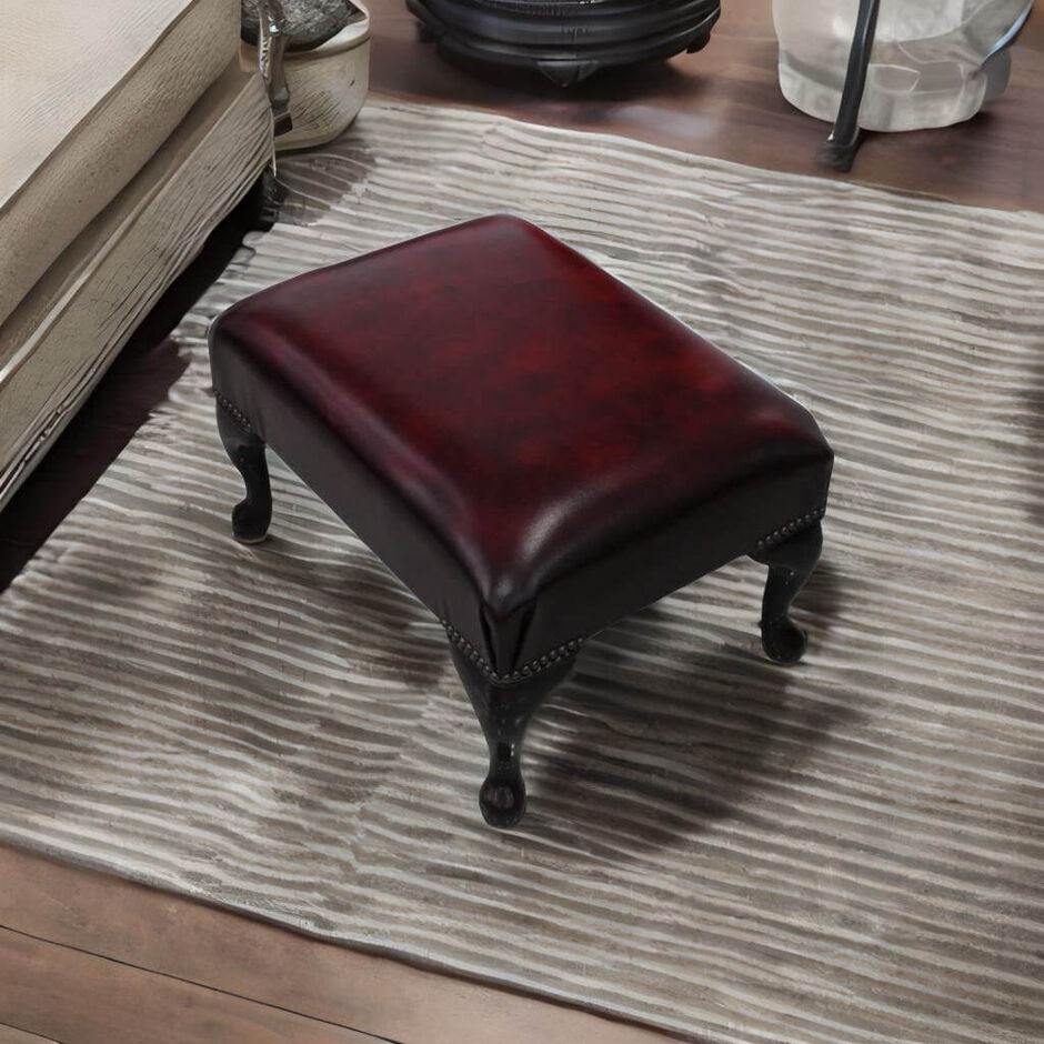 1930's Queen Anne Footstool. An elegant foot stool in the traditional Queen Anne Buttonless Style. British Vintage Real Genuine Leather