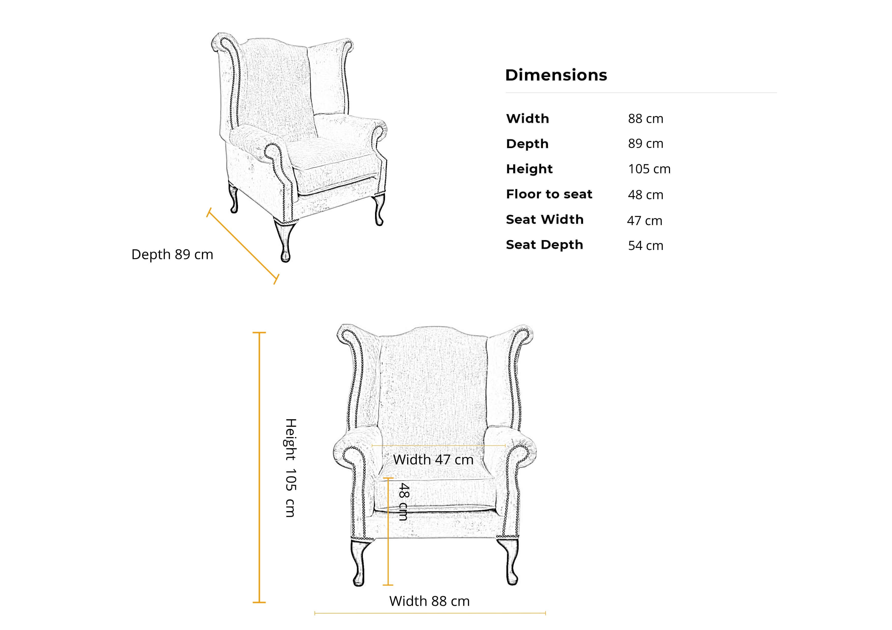 Wing Chair Dimensions : H 105cm x D 89cm x W 88cm apprx.