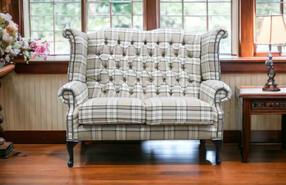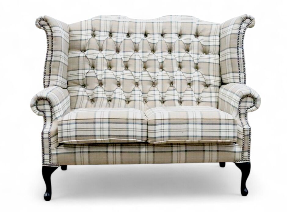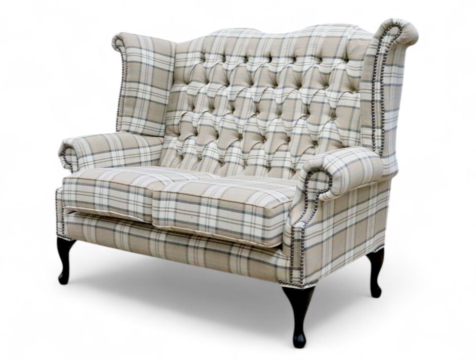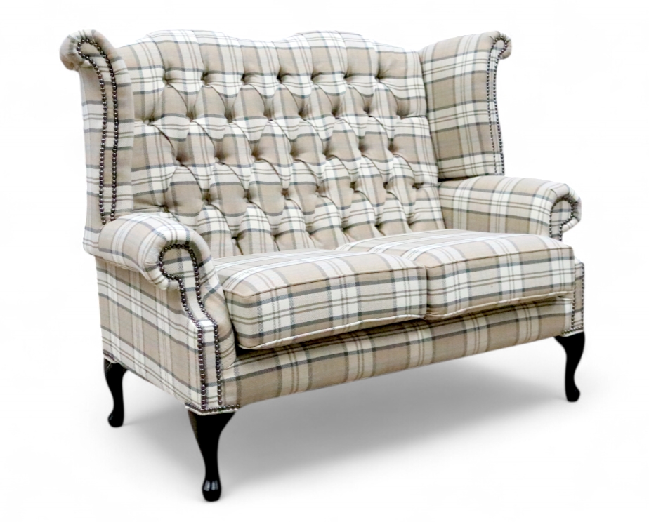 Chesterfield 2 Seater Queen Anne High Back Wing Sofa Chair Lana Beige