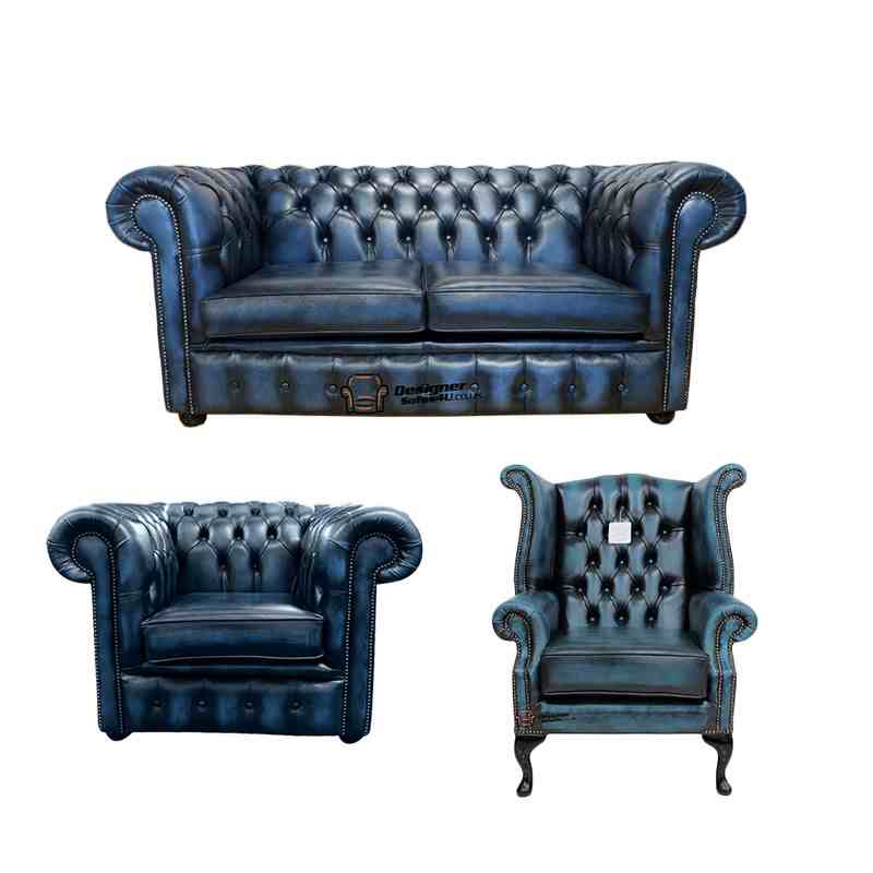 The Chesterfield Classic Suite available in 2 + Club Chair + Queen Anne Wing Chair (Two Seater Settee + Club Chair + Mallory Wing Chair).