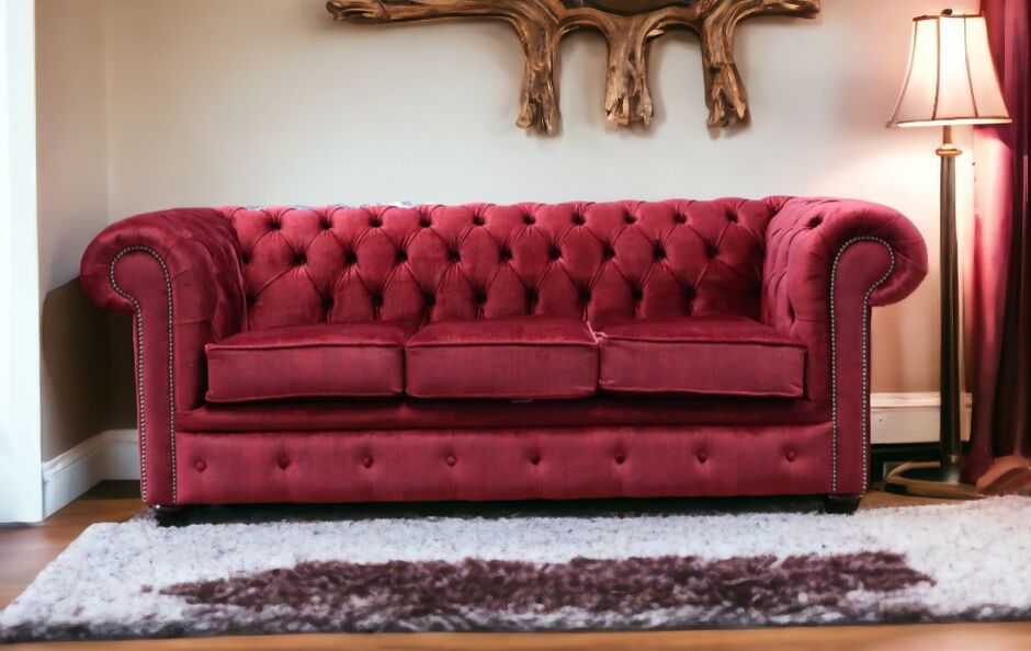 Chesterfield 3 Seater Ombra Burgandy Velvet Sofa