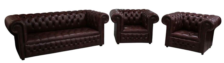 The Chesterfield Classic Sofa. The Chesterfield Leather Sofa with it's unique Low Back Style, Deep Buttoned Arms, Back and seatcomplemented with a Buttoned Front Border. The Scroll Fronted arms on the Chesterfield Leather Sofa are attractively embellished with lines of individual stud nails. An undoubted winner in any room from the cottage to the boardroom. A classic of its kind ;Traditional Vintage British Style.
