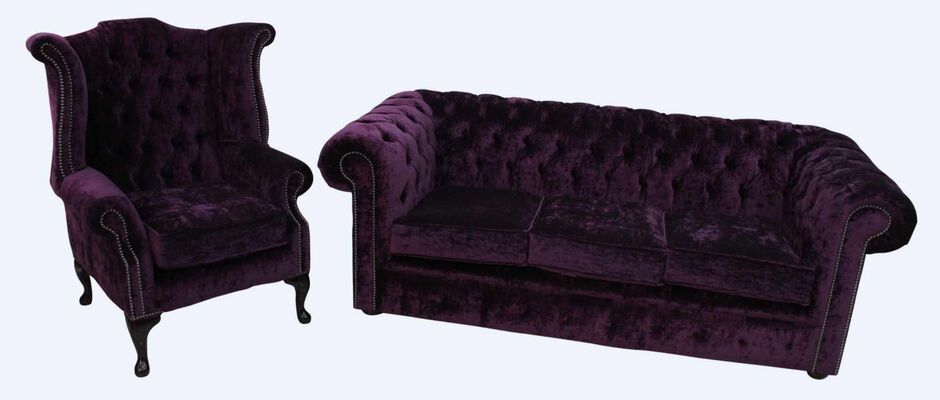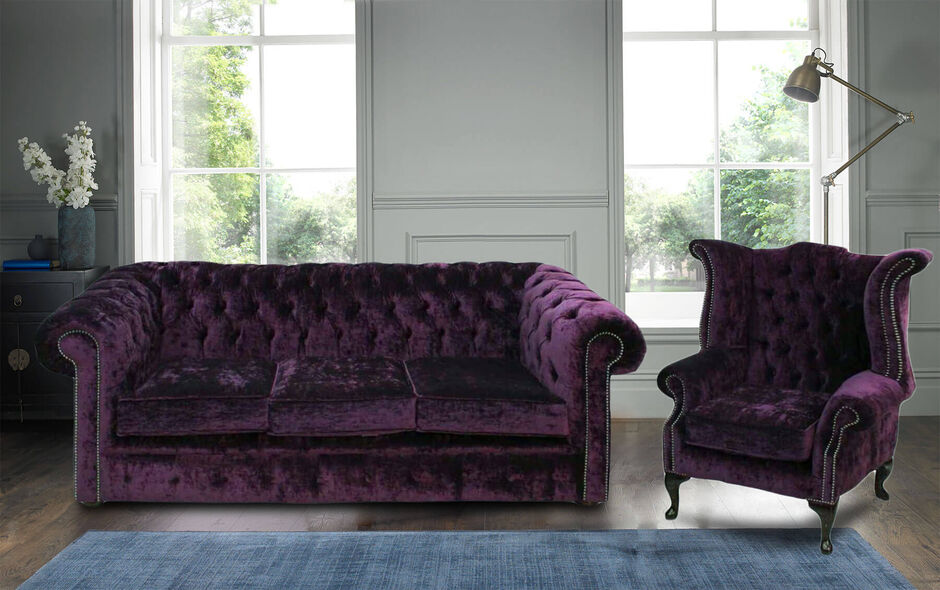 The Chesterfield Classic Sofa. The Chesterfield Velvet Sofa with it's unique Low Back Style, Deep Buttoned Arms and Back complemented with a Buttoned Front Border. The Scroll Fronted arms on the Chesterfield Leather Sofa are attractively embellished with lines of individual stud nails. An undoubted winner in any room from the cottage to the boardroom. A classic of its kind ;Traditional Vintage British Style. Handmade in Chenille