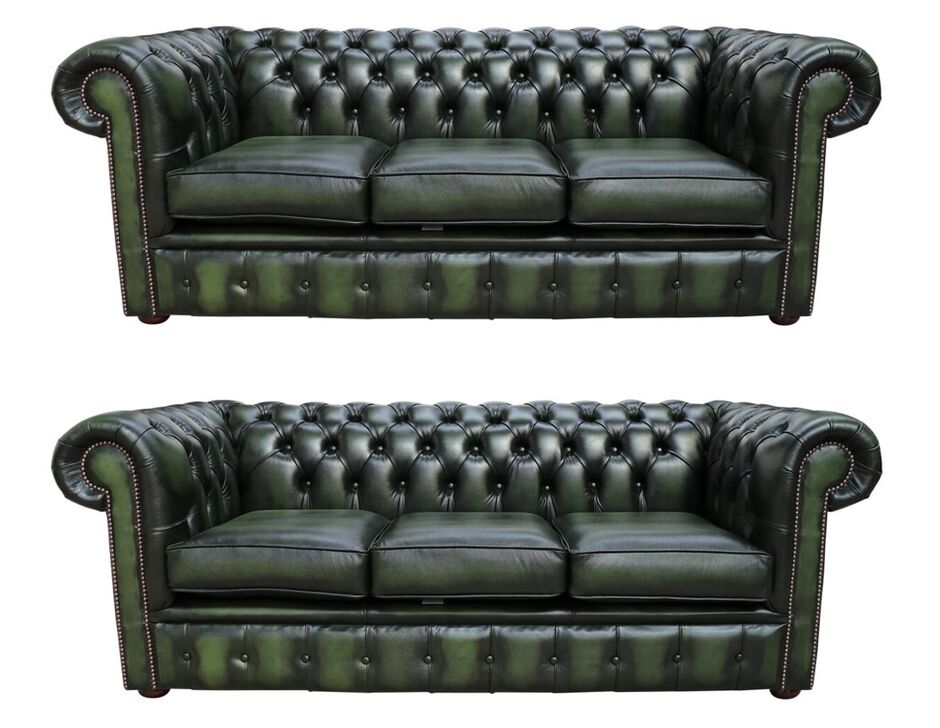Chesterfield 3+3 Leather Sofa Offer Antique Green
