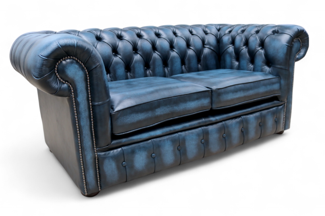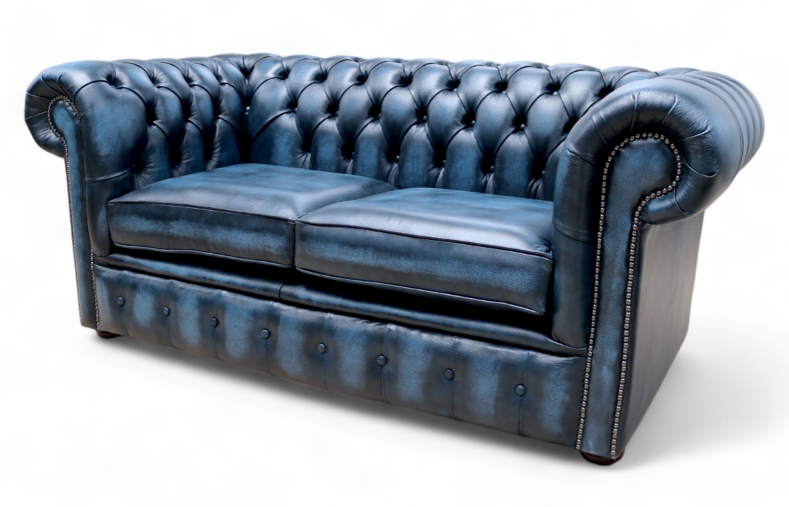 Chesterfield 2 Seater Antique Blue Leather Sofa