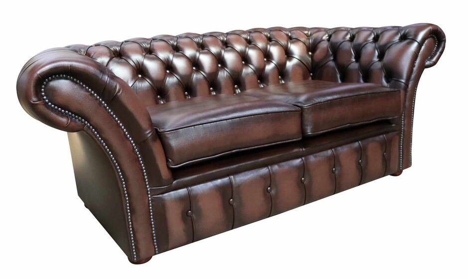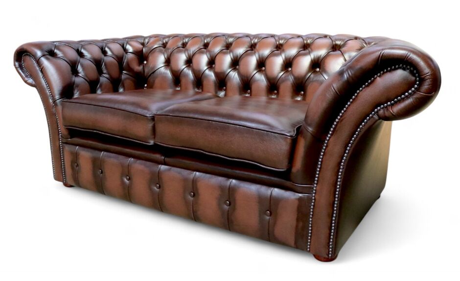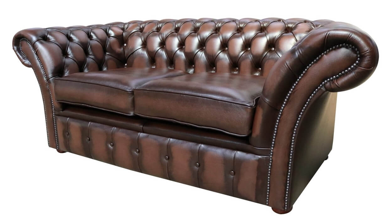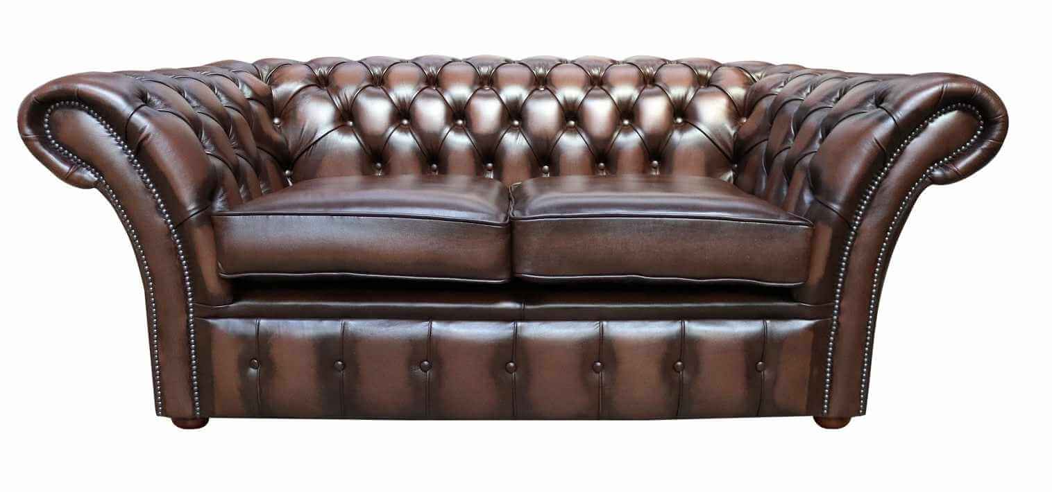 Chesterfield Balmoral 2 Seater Sofa Settee Antique Brown Real Leather