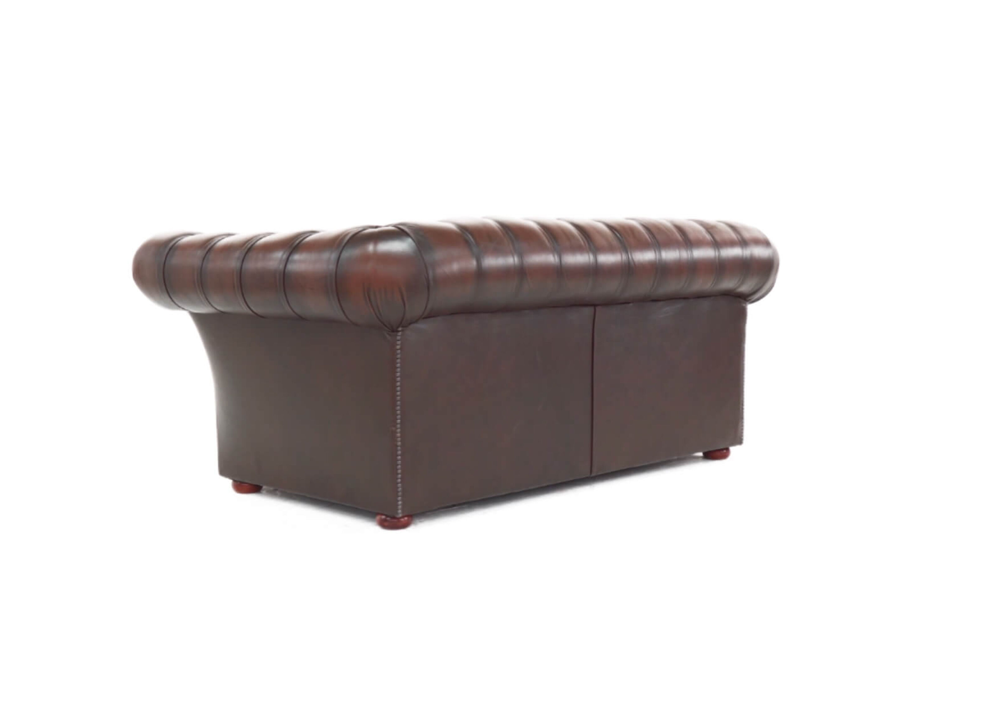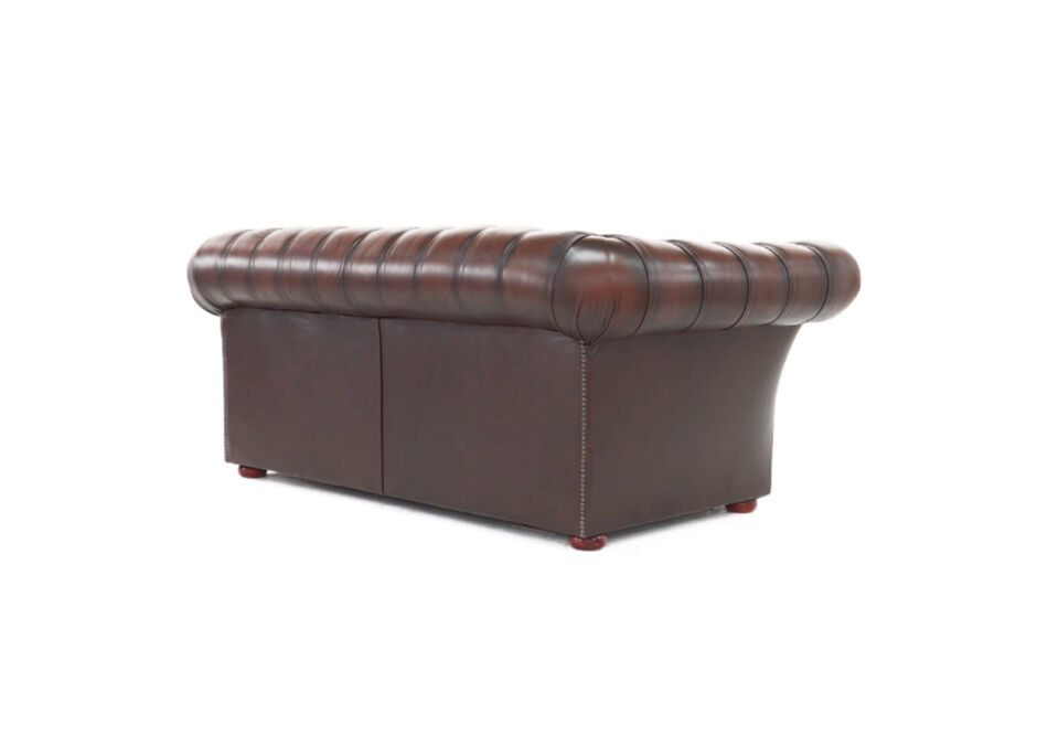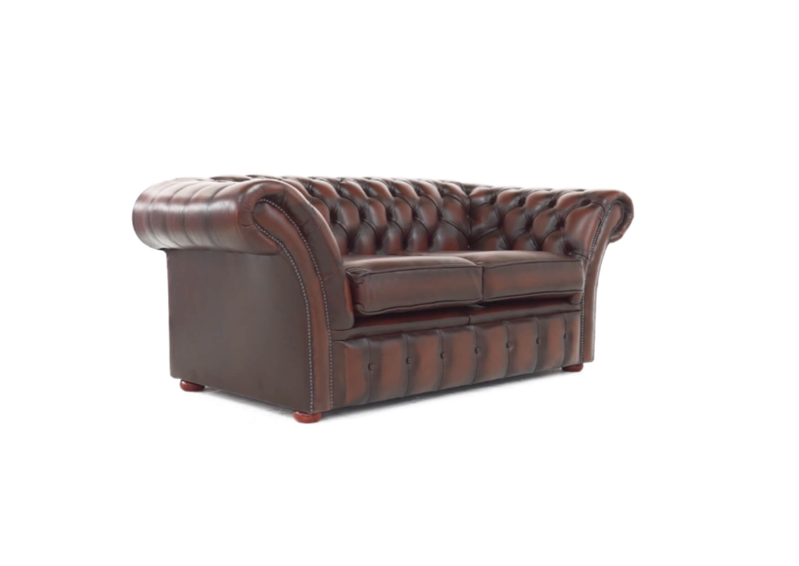 Indulge in classic sophistication with this stunning Chesterfield Balmoral 2-Seater Sofa, handcrafted in luxurious antique brown real leather. Featuring the iconic deep button-tufted backrest, scrolled arms, and double-studded detailing, this piece is the epitome of traditional British design.