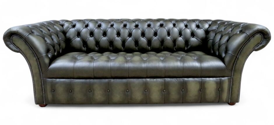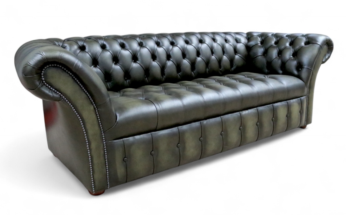 Chesterfield 3 Seater Balmoral Buttoned Seat Leather Sofa Antique Olive Green