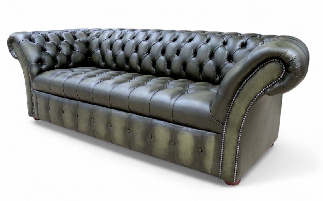 Chesterfield Balmoral 3 Seater Sofa Buttoned Seat Leather Sofa Antique Olive Green