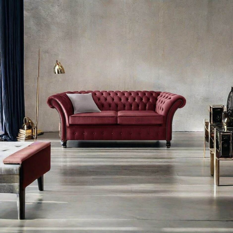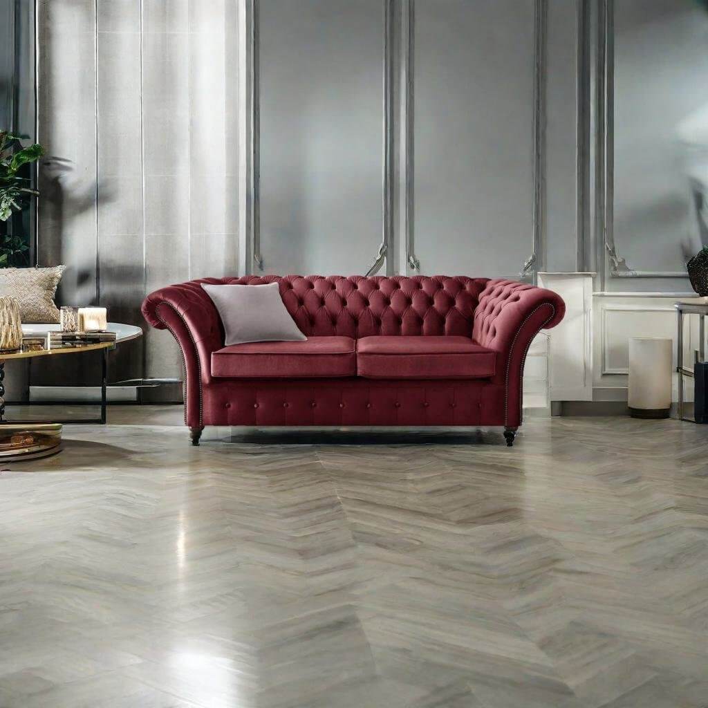 Chesterfield Balmoral 3 Seater Malta Red Velvet Fabric Sofa