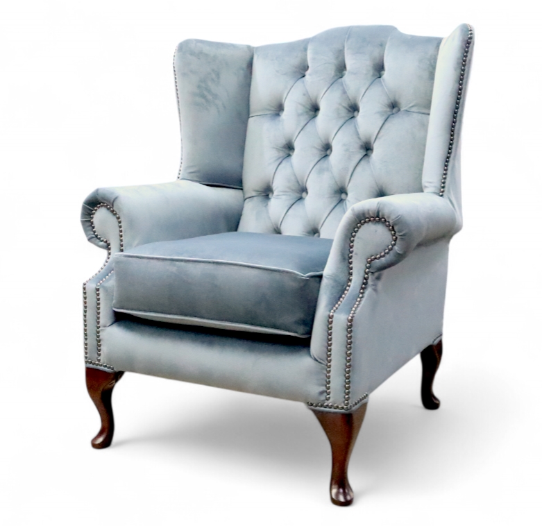 Our Winged High-Back Chesterfield Bloomsbury Armchair with exposed hardwood leg detail. A very popular look in the Chesterfield style.