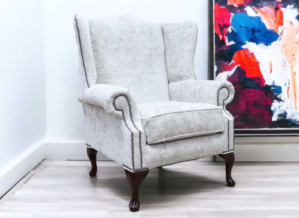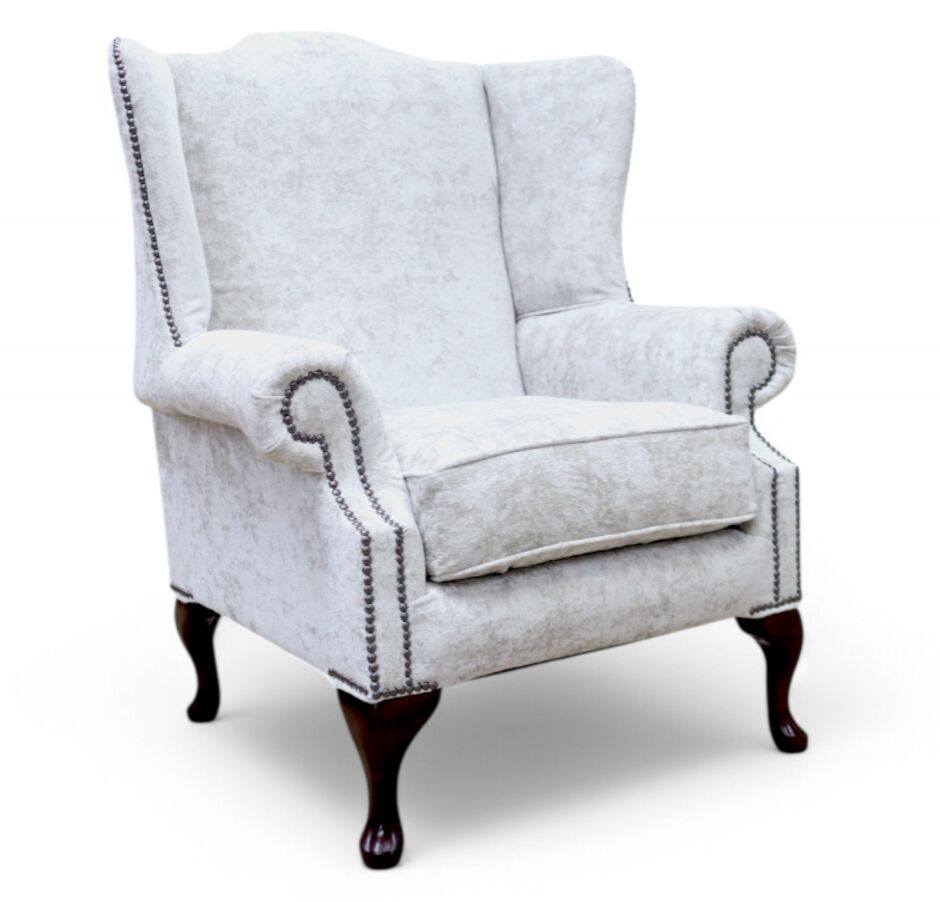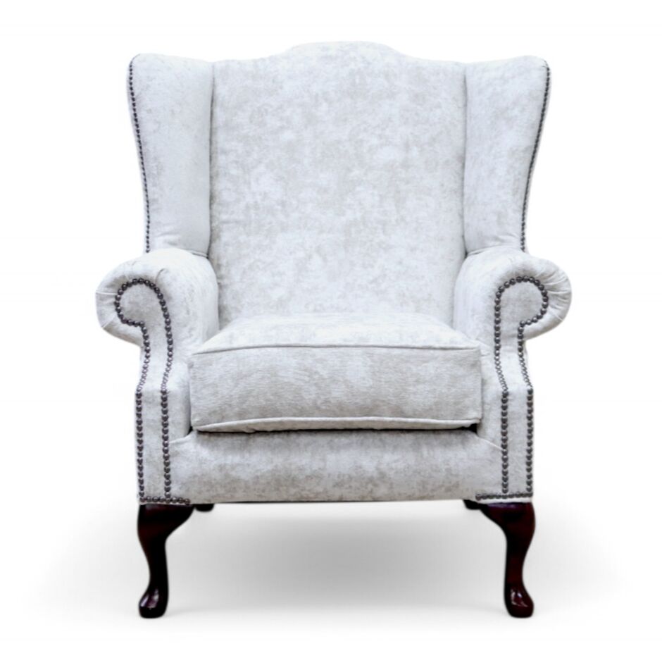 Chesterfield Bloomsbury Saxon Flat Wing Queen Anne Chair Nuovo Silver Fabric