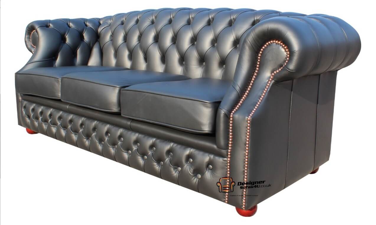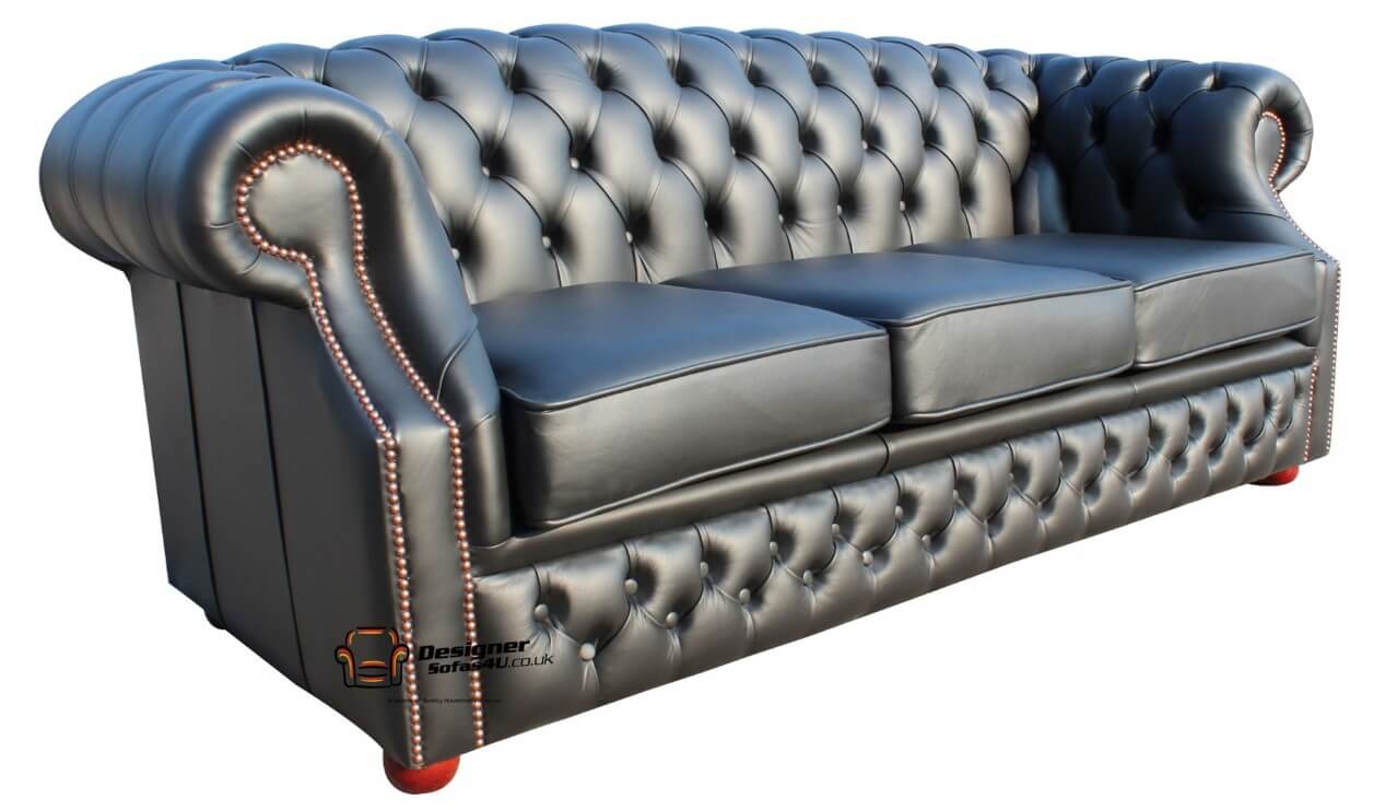 Chesterfield Buckingham 3 Seater Sofa Black Leather | DesignerSofas4U