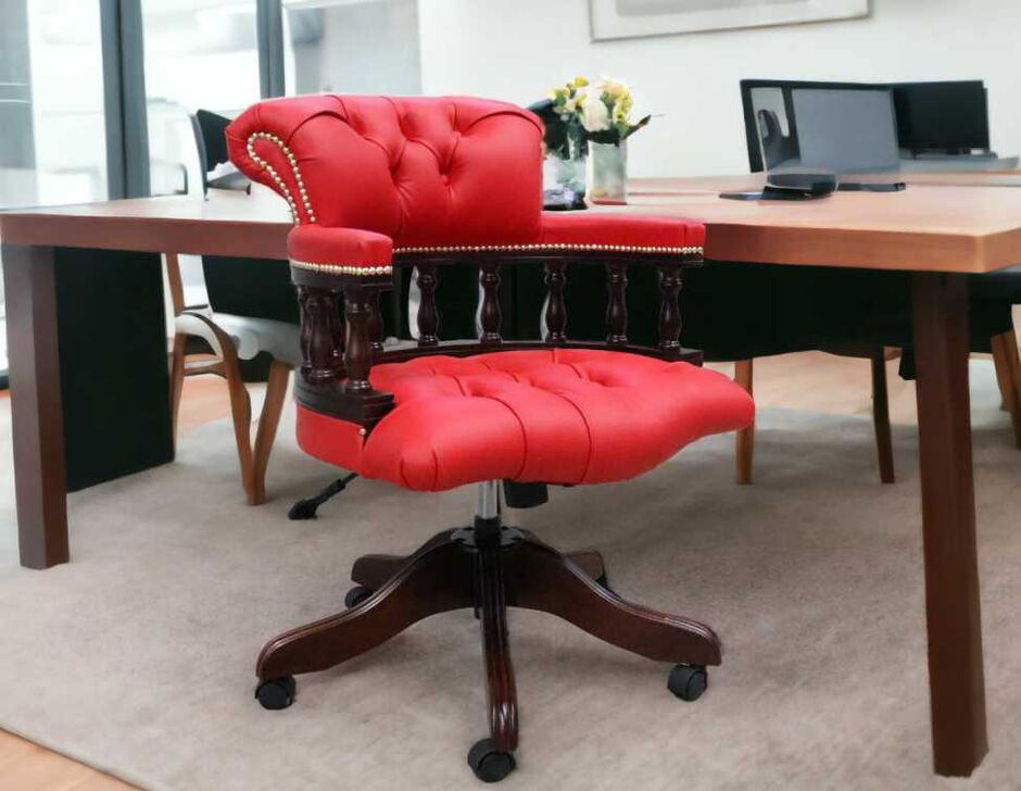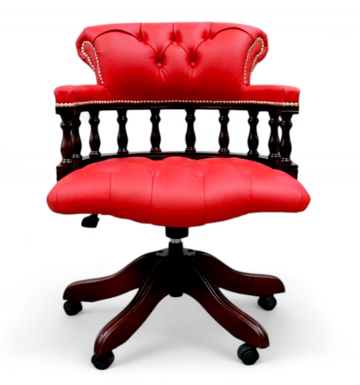 The Chesterfield Classic Captains Chair with Hardwood Arms, Deep Buttoned back and seat complemented with a with a height adjustable gas tilt mechanism upholstered in Real Genuine Leather. Manufactured in UK