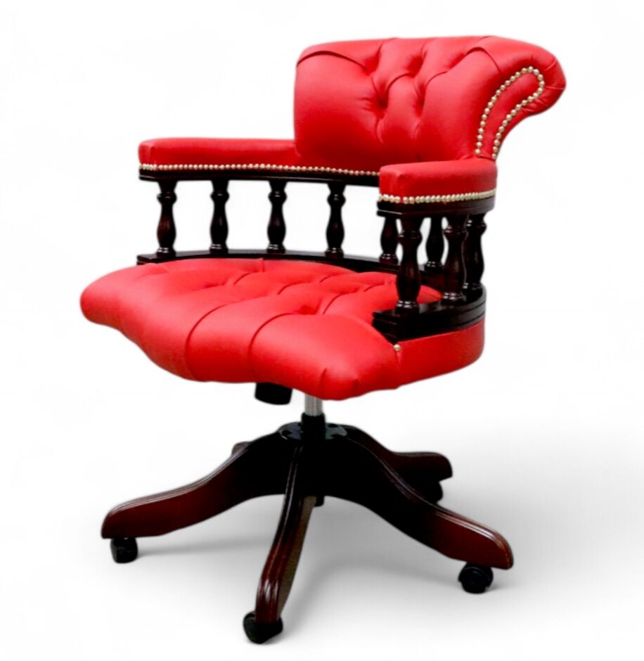 Chesterfield Captains Buttoned Leather Office Chair Old English Leather with Wooden Frame