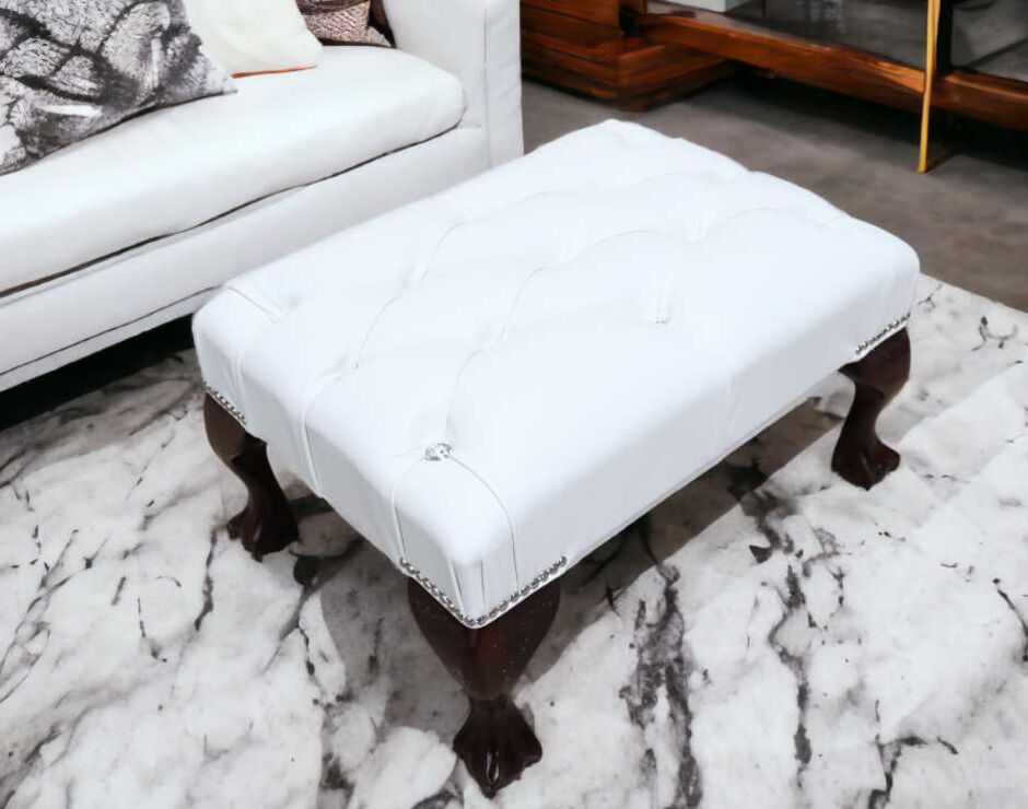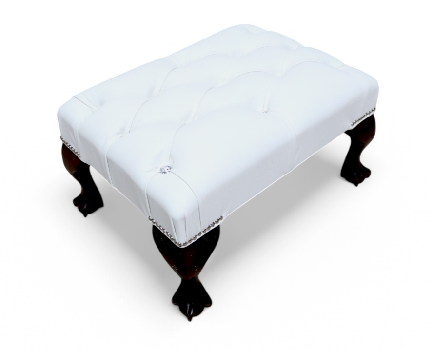 Chesterfield Crystal Diamante Queen Anne Footstool White Leather