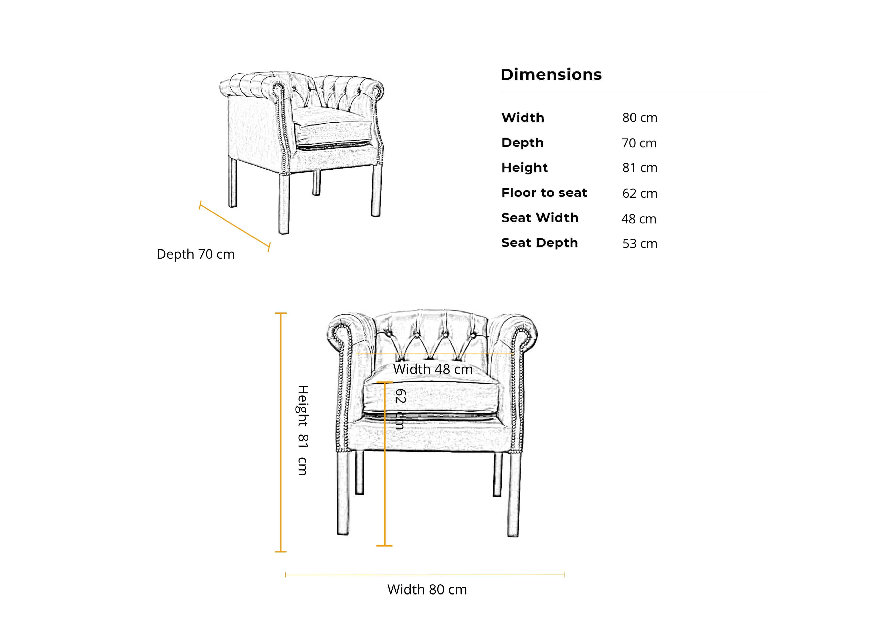 Dimensions 1 seater Chesterfield Devon Tub Chair