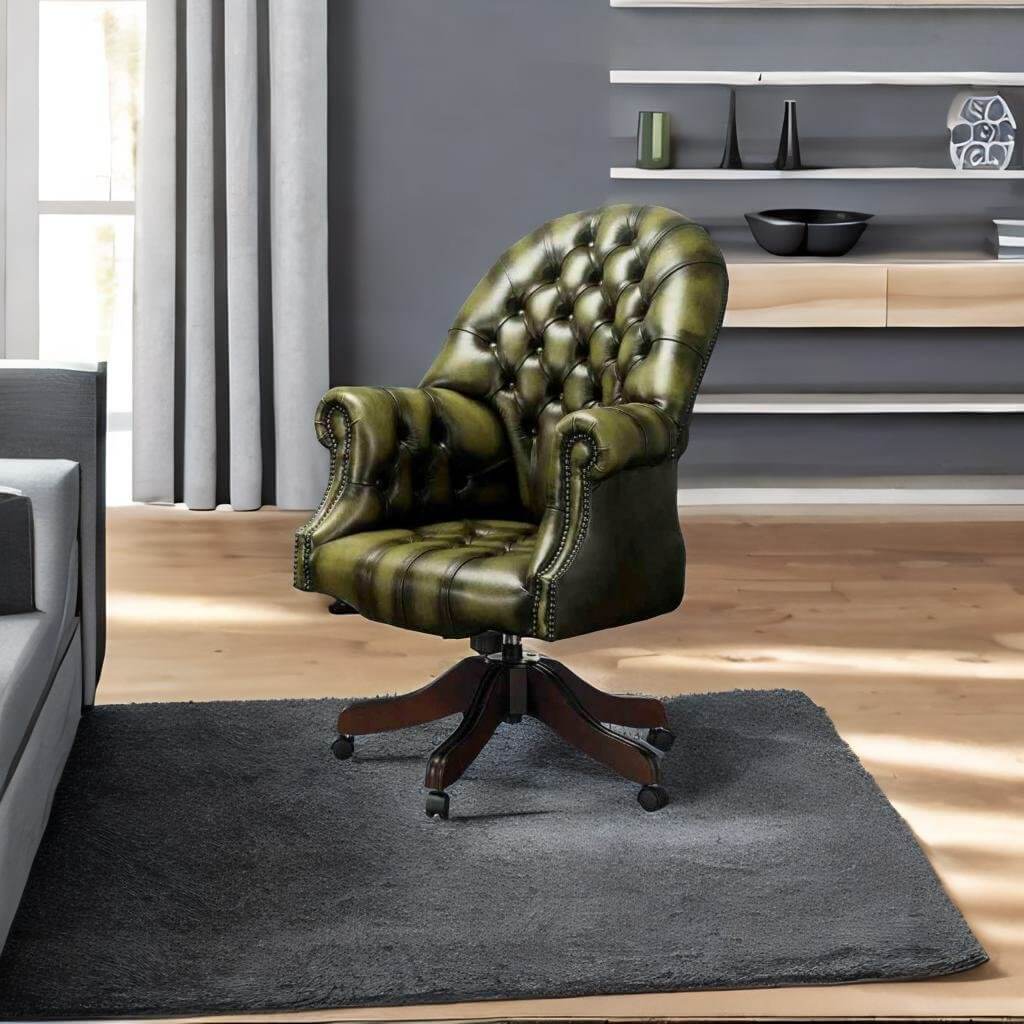 Chesterfield Directors Chair Antique Olive Real Leather Office Chair