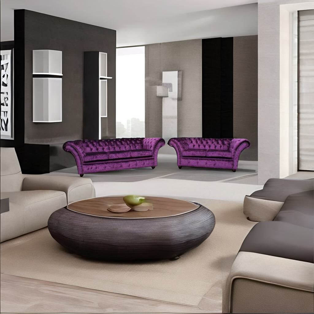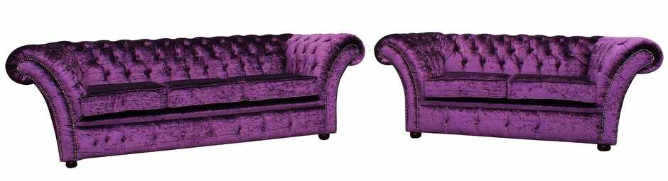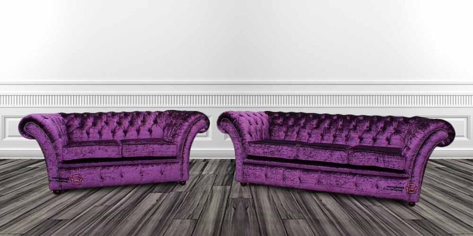 Chesterfield Drummond Purple 3+2 Seater Sofa Settee Suite Boutique Crush Velvet Fabric