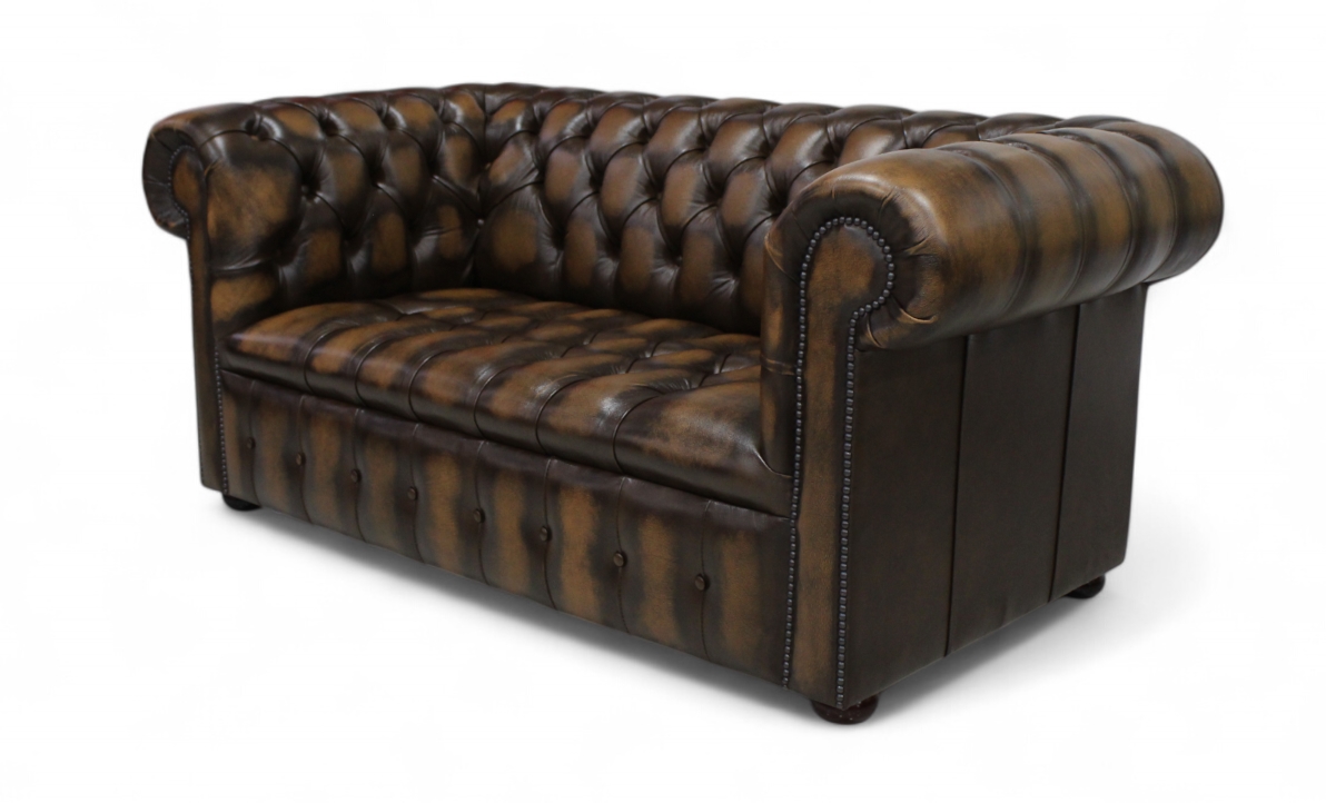 The Chesterfield Classic Sofa. The Chesterfield Leather Sofa with it's unique Low Back Style, Deep Buttoned Arms, seats and Back complemented with a Buttoned Front Border. The Scroll Fronted arms on the Chesterfield Leather Sofa are attractively embellished with lines of individual stud nails. An undoubted winner in any room from the cottage to the boardroom. A classic of its kind ;Traditional Vintage British Style.