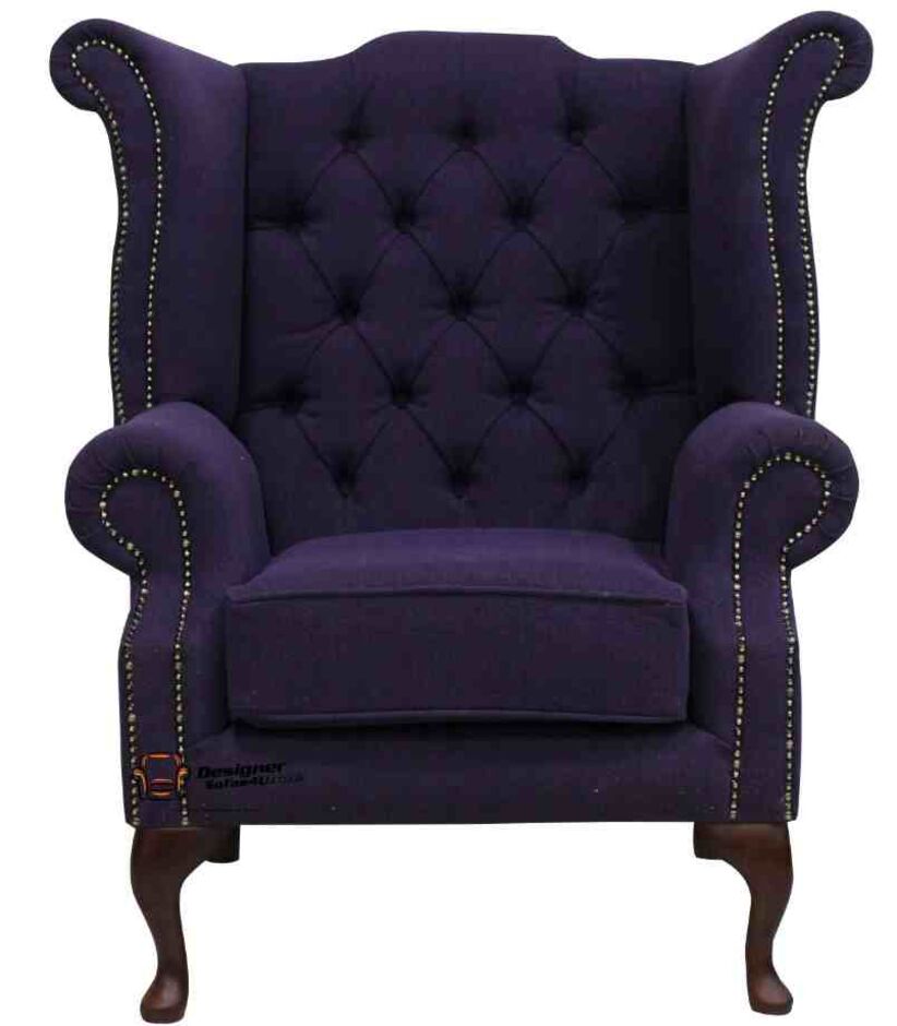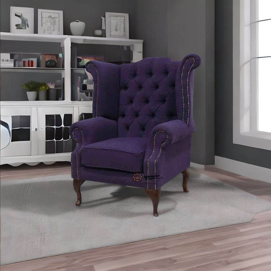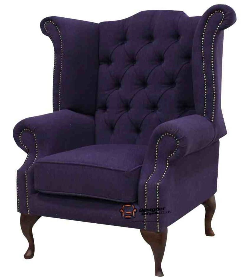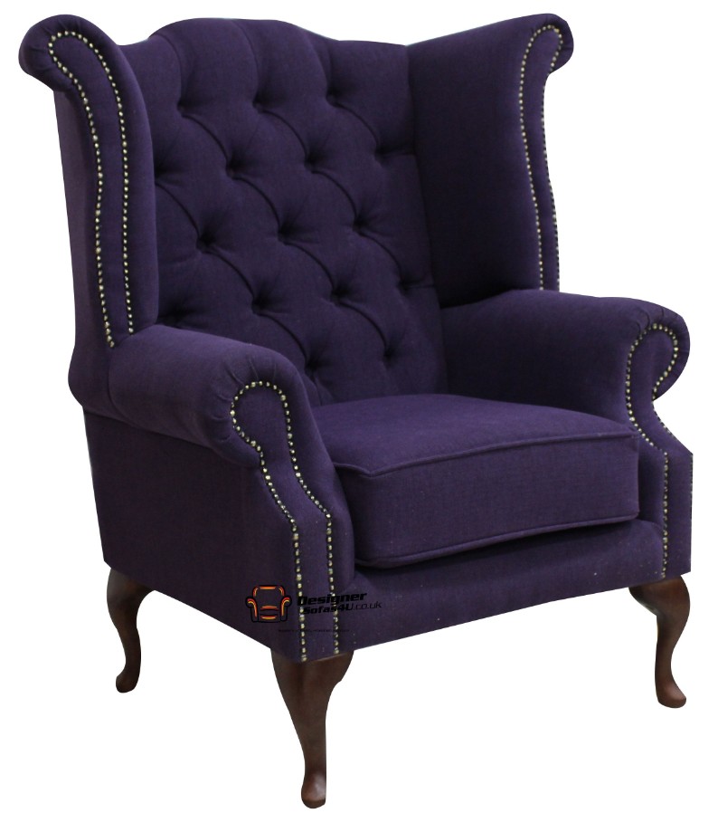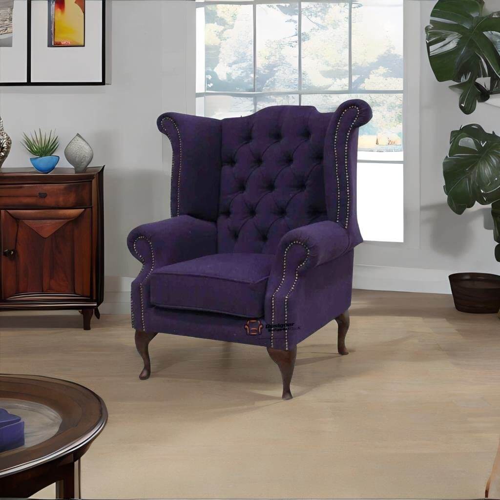 Chesterfield Purple Queen Anne High Back Wing Chair Verity