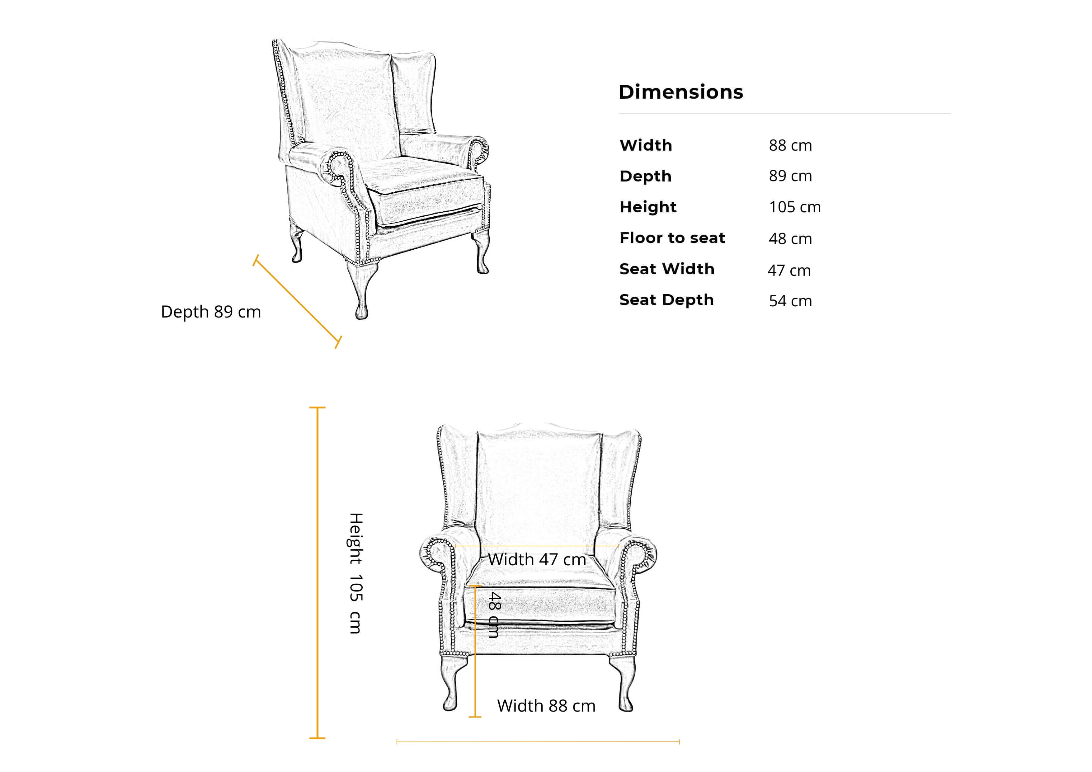 Wing Chair Dimensions : H 105cm x D 89cm x W 88cm apprx.