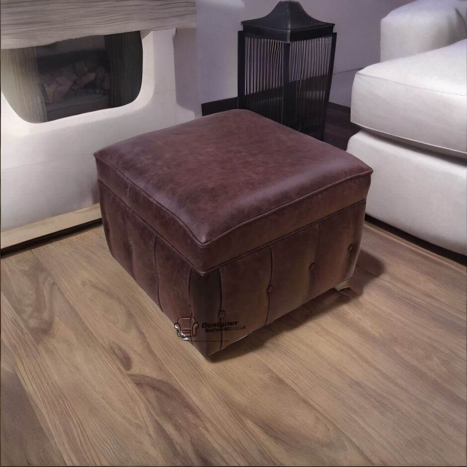 Chesterfield Storage Footstool Pouffe UK Manufactured Old English Brown