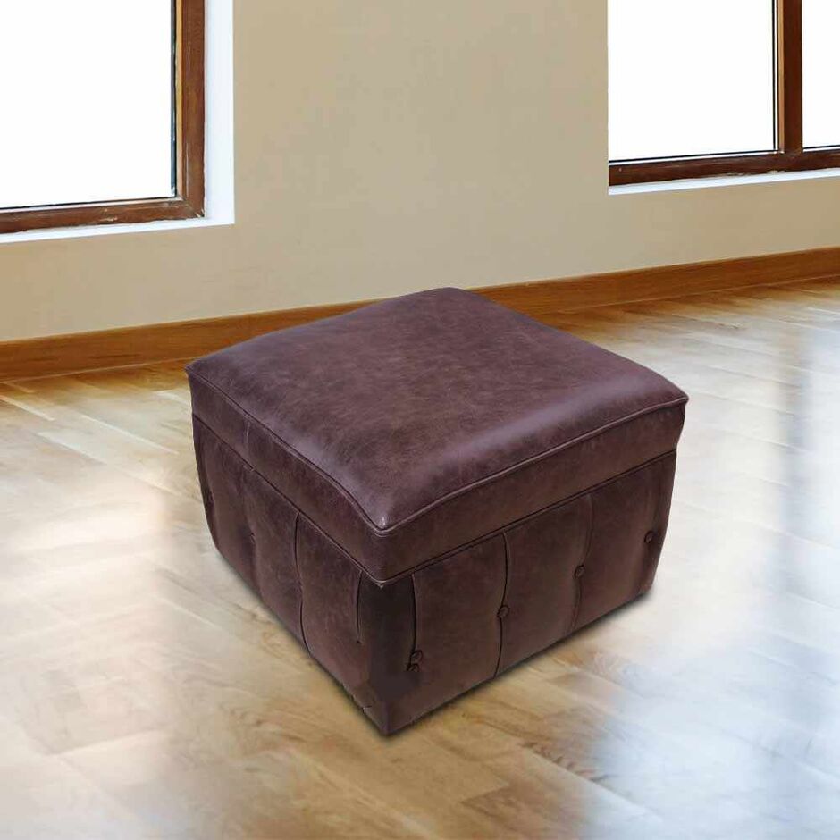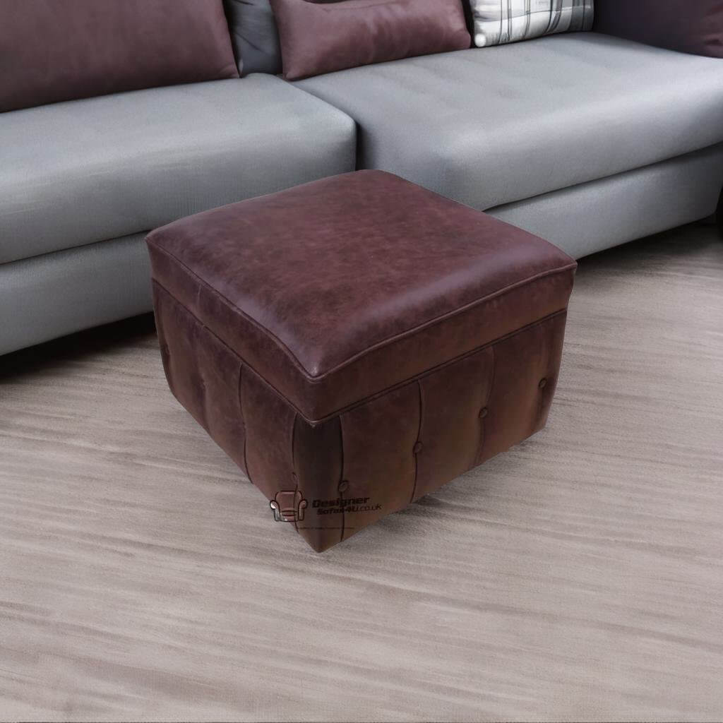 Box Footstool. An elegant foot stool in the traditional Deep Buttoned Style. British Vintage Real Genuine Leather
