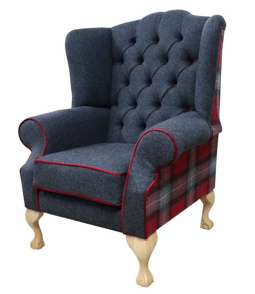 Chesterfield Frederick Wool Wing Chair – Skye Red Check Tweed