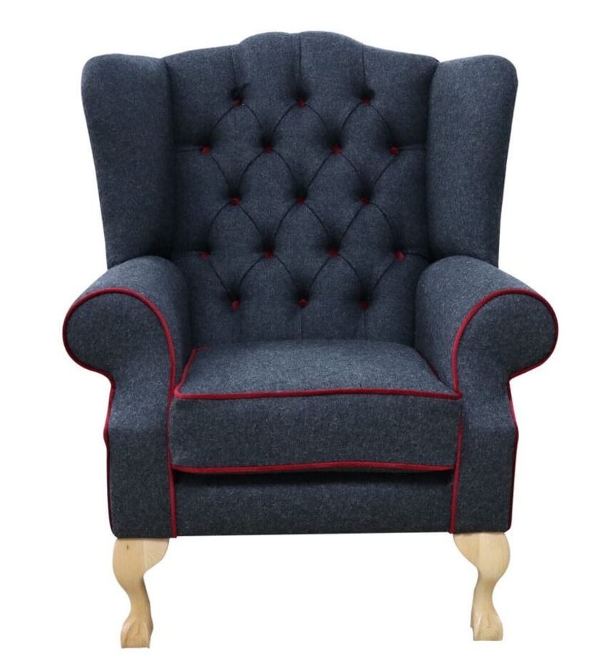 • Contrasting Piping: Red piping adds a vibrant accent that enhances the chair’s tailored silhouette.