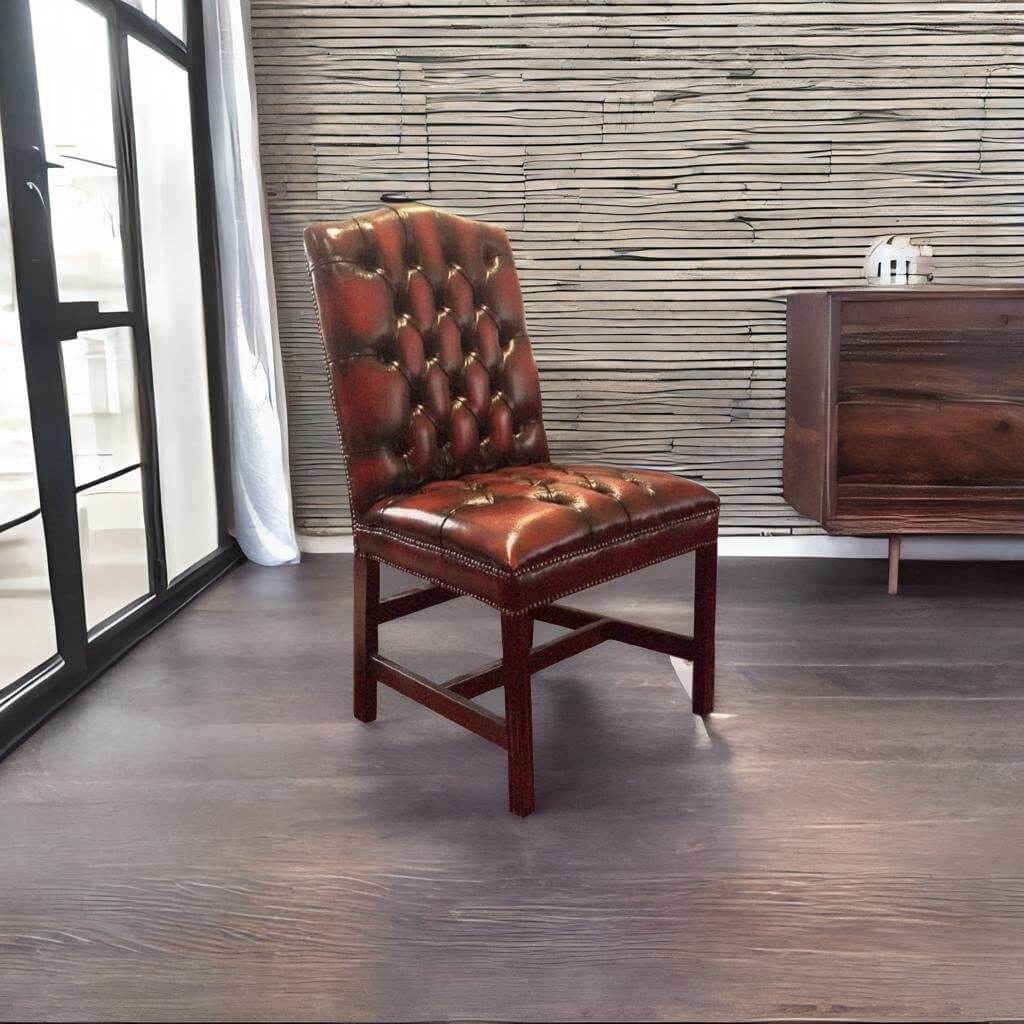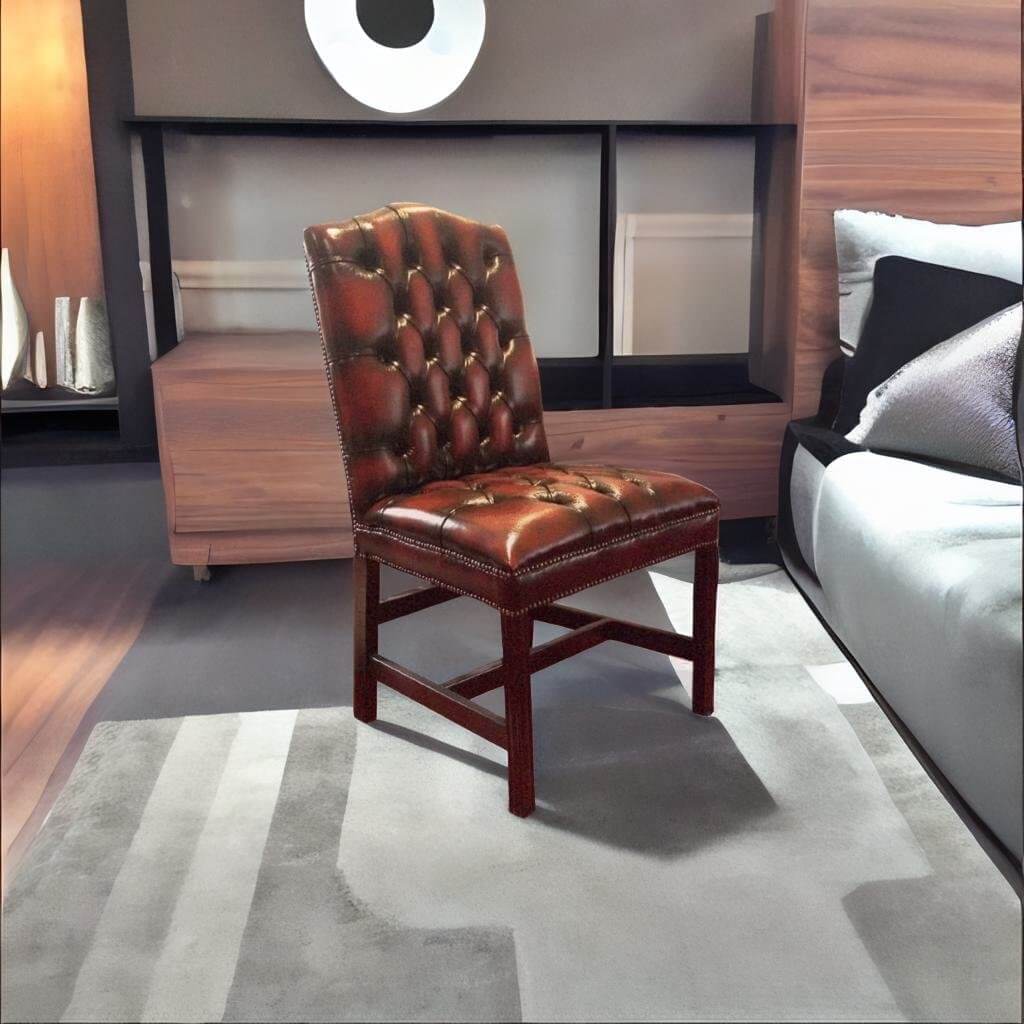 The Chesterfield Classic Gainsborough Dining Chair with Hardwood Frame, Deep Buttoned High Back and Seat upholstered in Real Genuine Leather. Manufactured in UK